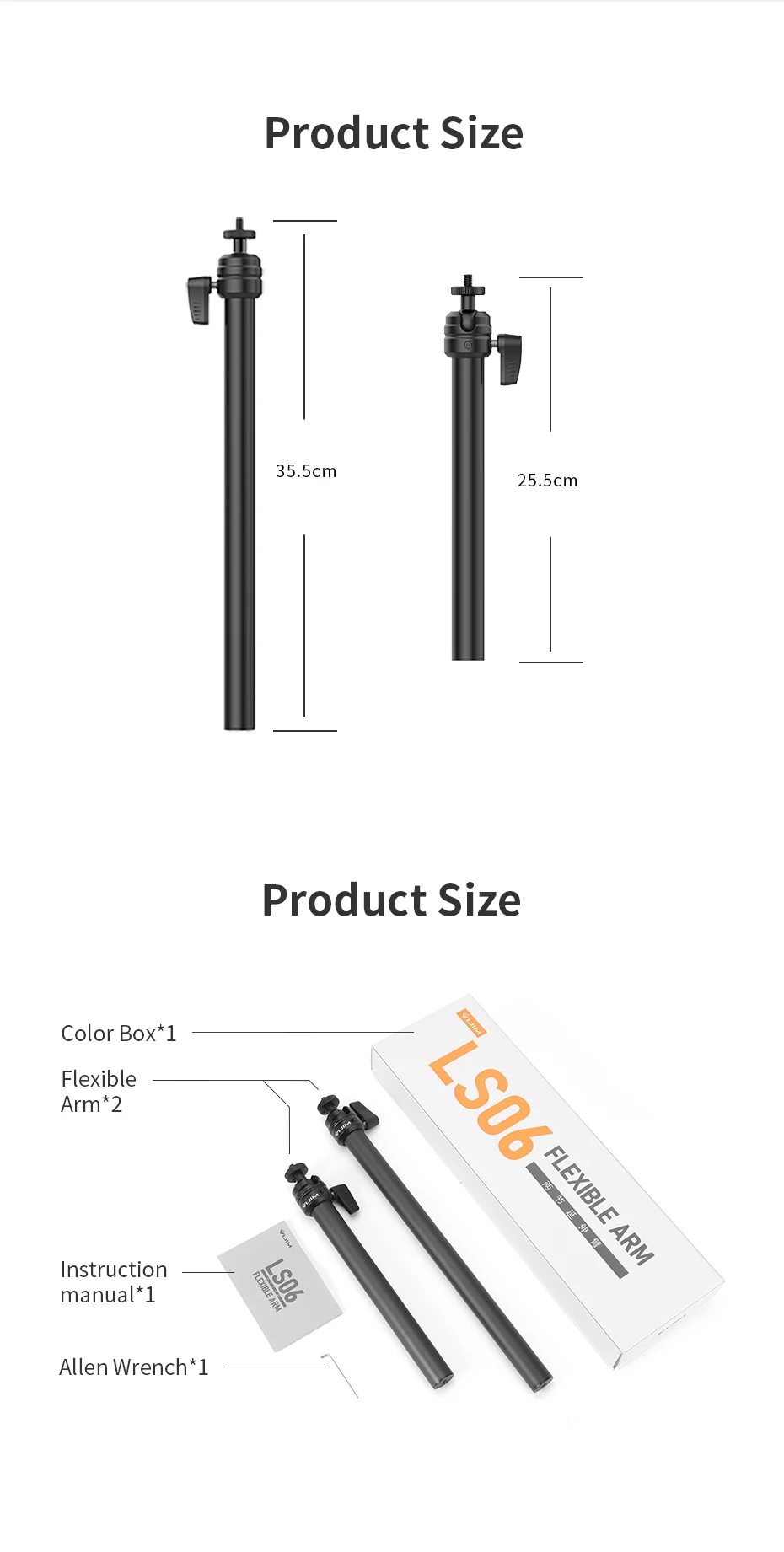 LS06 Two-section Extension Flexible Arm for Desk Mount Stand C-clamp