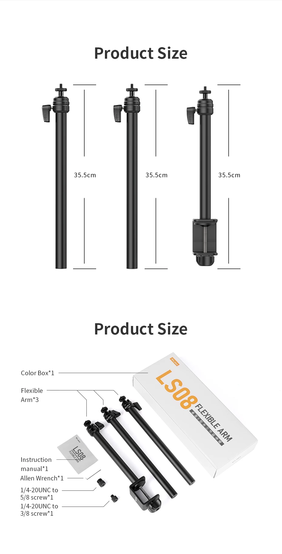 LS04 Two-section Extension Flexible Arm for Desk Mount Stand C-clamp