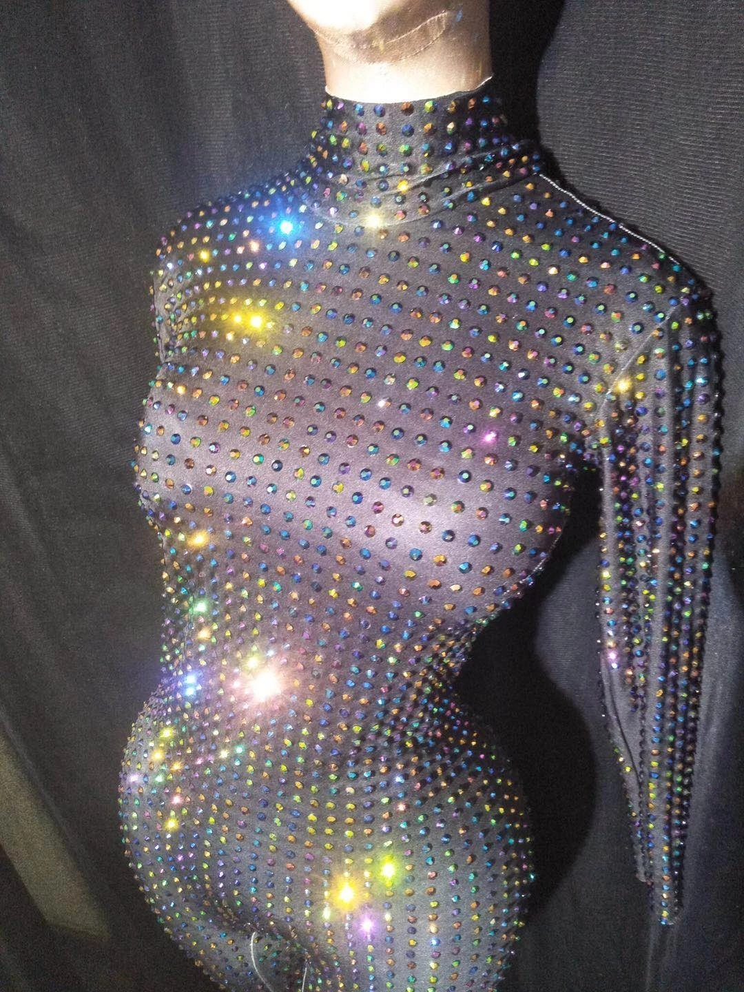 Блестящие черные стразы, певец, сценический танцевальный комбинезон, gogo bar show, Комбинезоны для певиц, танцевальный r Club, боди
