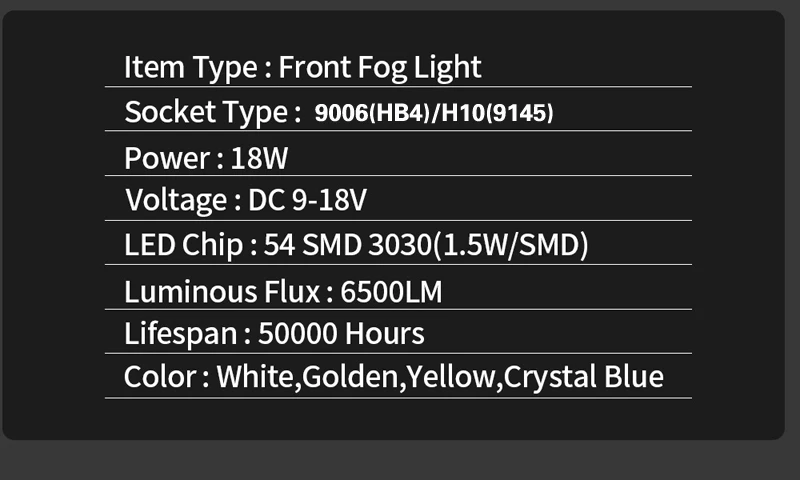 Посылка включает в себя: 2 светодиодных противотуманных фары