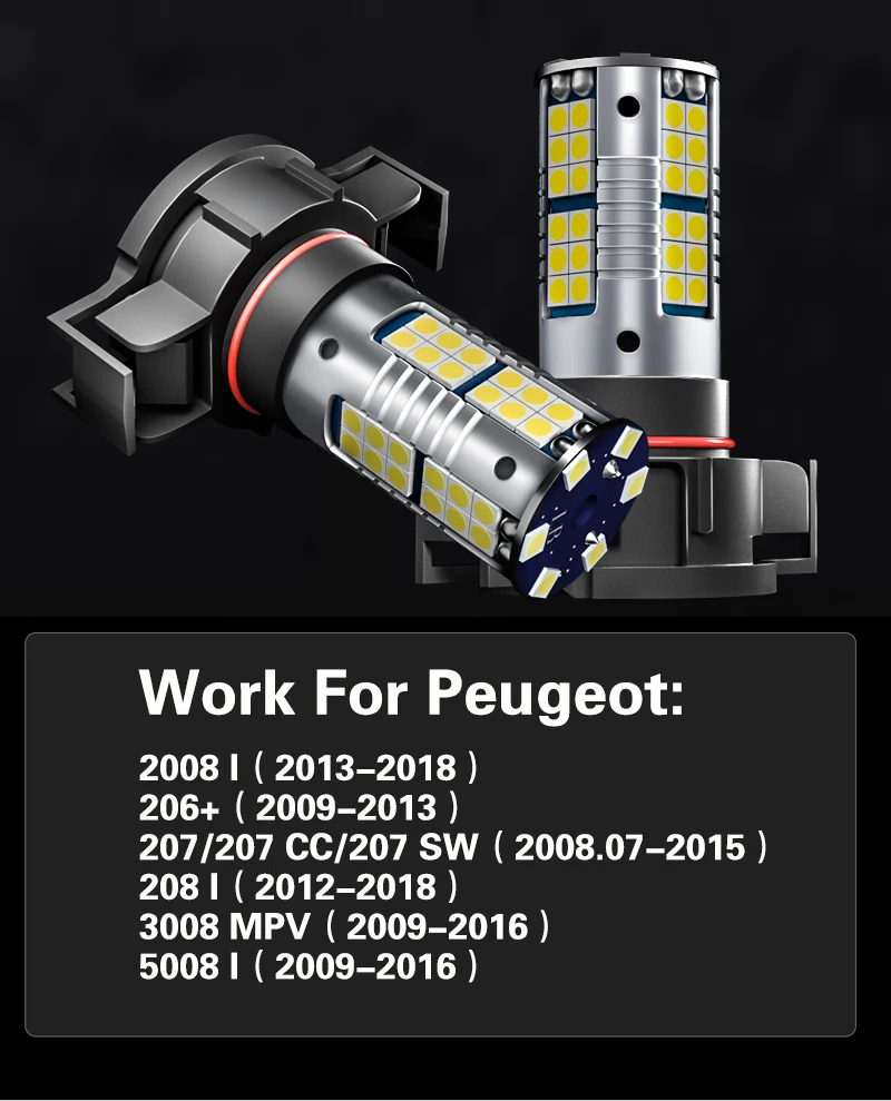 Посылка включает в себя: 2 шт. светодиодный противотуманный светильник s для Peugeot: 2008 I(2013-2018) 206 +(2009-2013) 207/207 CC/207 SW (2008,07-2015) 208 I(2012-2018) 3008 MPV(2009-2016) 5008 I(2009-2016) Характеристика продукта: 1. Тип изделия: передний противотуманный светильник 3. Тип разъема: PSX24W (2504) 4. Цвета: белый/золотой/желтый/кристально-синий 5. Мощность: 18 Вт 6. Напряжение: 9-18 в постоянного тока 7. Светодиодный чип: 54 SMD 3030 чип (1,5 W/SMD) 8. Световой поток: 6500LM 9. Материал: алюминий 10. Срок службы: 50000 часов 11.Canbus Нет ошибок. Светодиодный светильник заменит галогенную стеклянную лампу на складе. Низкая температура, низкое энергопотребление, высокая яркость. Добавьте стиль и украсьте свой автомобиль. Супер яркие светодиоды намного ярче, чем оригинальные лампы накаливания.