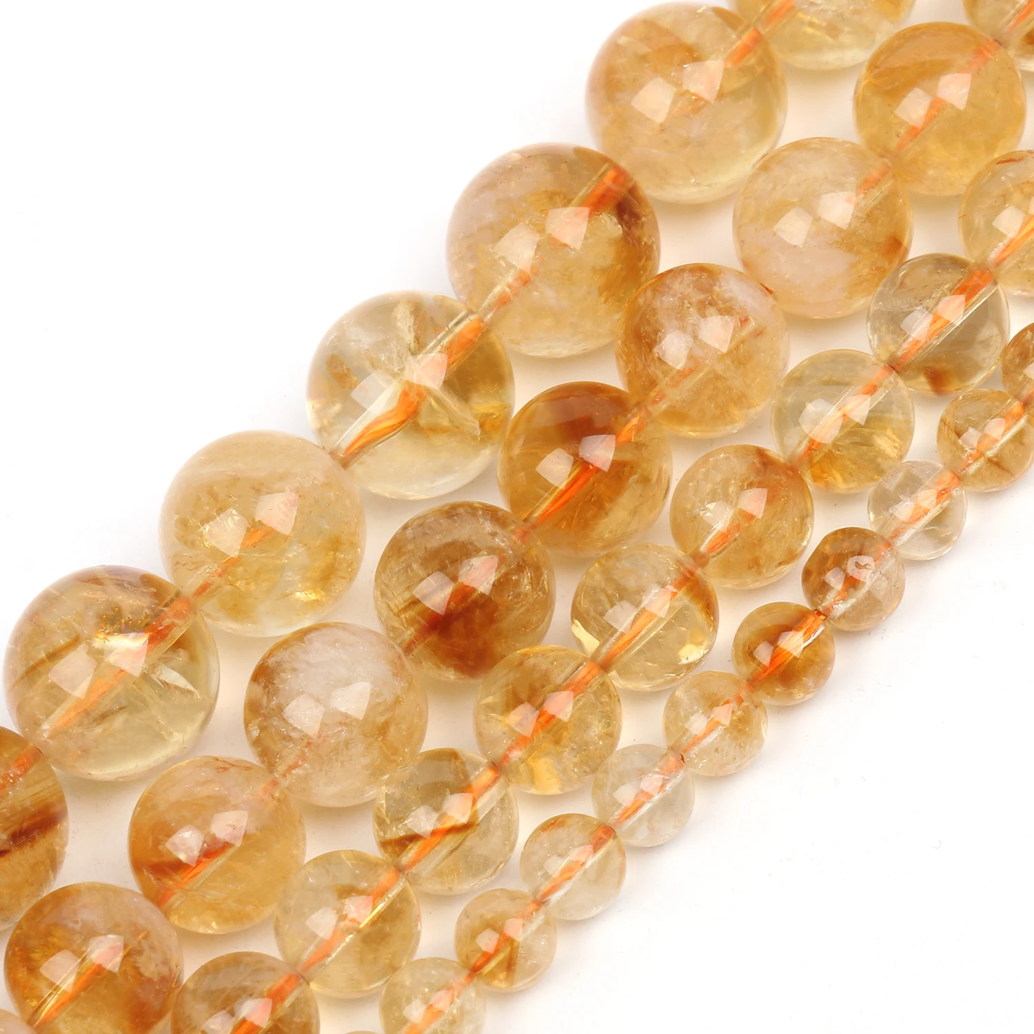 АА натуральные цитрины круглые каменные бусины для изготовления ювелирных изделий DIY ожерелье браслет 6 мм-12 мм разделительные свободные бусины Кристалл 15 "оптовая продажа