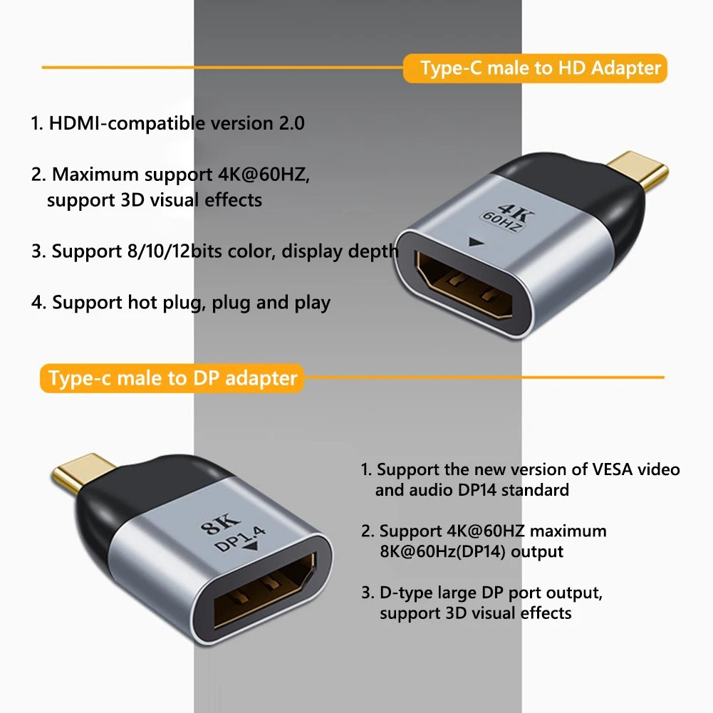 8K/4K 60Hz Type-C to USB 3.1/DP/Mini DP/VGA/HDMI-compatible/RJ45 HD Video Plug Converter USB Type C Male to Female Projector Mobile Phone Laptop Adapter for Apple Huawei Samsung