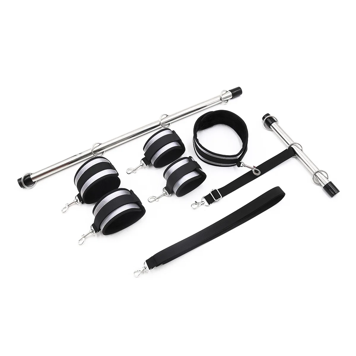 Взрослая игра удерживающие скобы металлический распорный набор для связывания с манжетами на лодыжке воротник Фетиш раб БДСМ ролевые игры секс игрушки