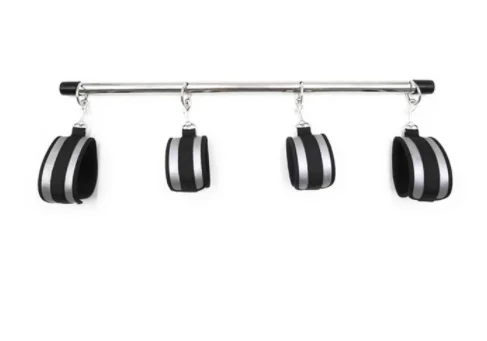 Откройте ноги и руки в этом принудительно покорном наборе. Курчавая пара распорных стержней позволяет вам или вашему партнеру быть в нужном положении для удовольствия каждый раз.