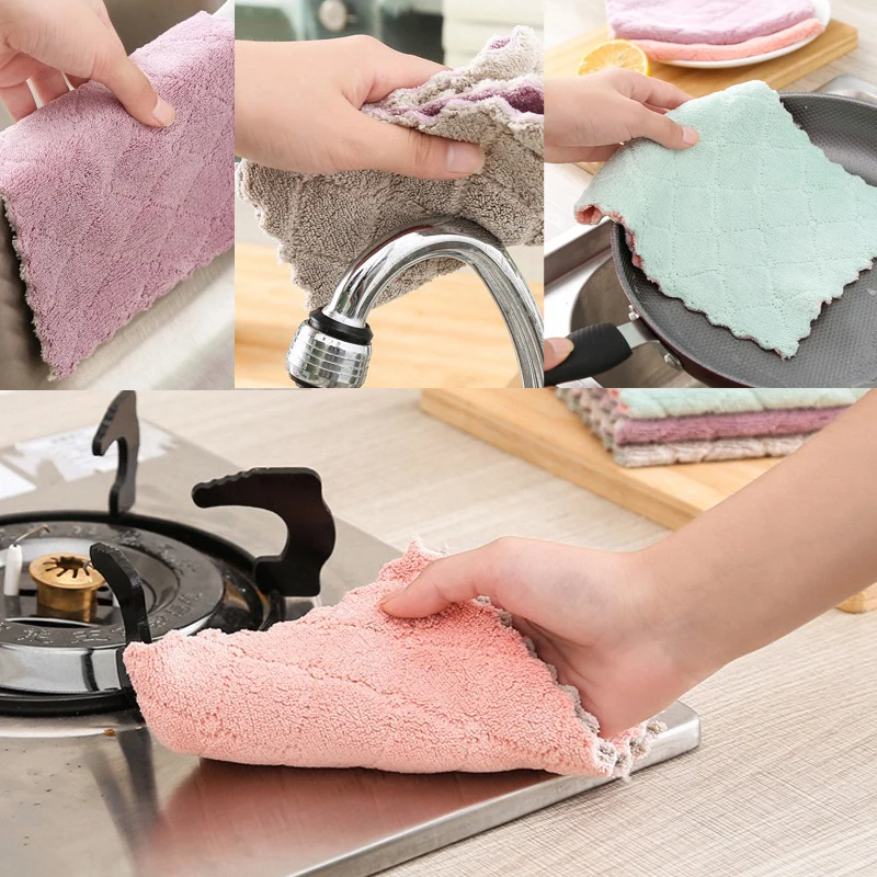 -Идеальная салфетка для мытья посуды из плотного кораллового флиса, которая отлично впитывает воду, может быстро и эффективно захватывать и очищать грязь, пятна и пятна на кухонной утвари, посуды и кухонной столешнице, раковина и т. Д. Это действительно отличный кухонный аксессуар для домашнего или ресторанного использования.