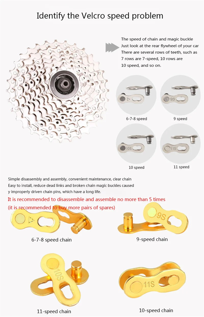 Применение: одна скорость, 6/7/8/9/10/11 скорость, велосипедные цепи различных брендов.