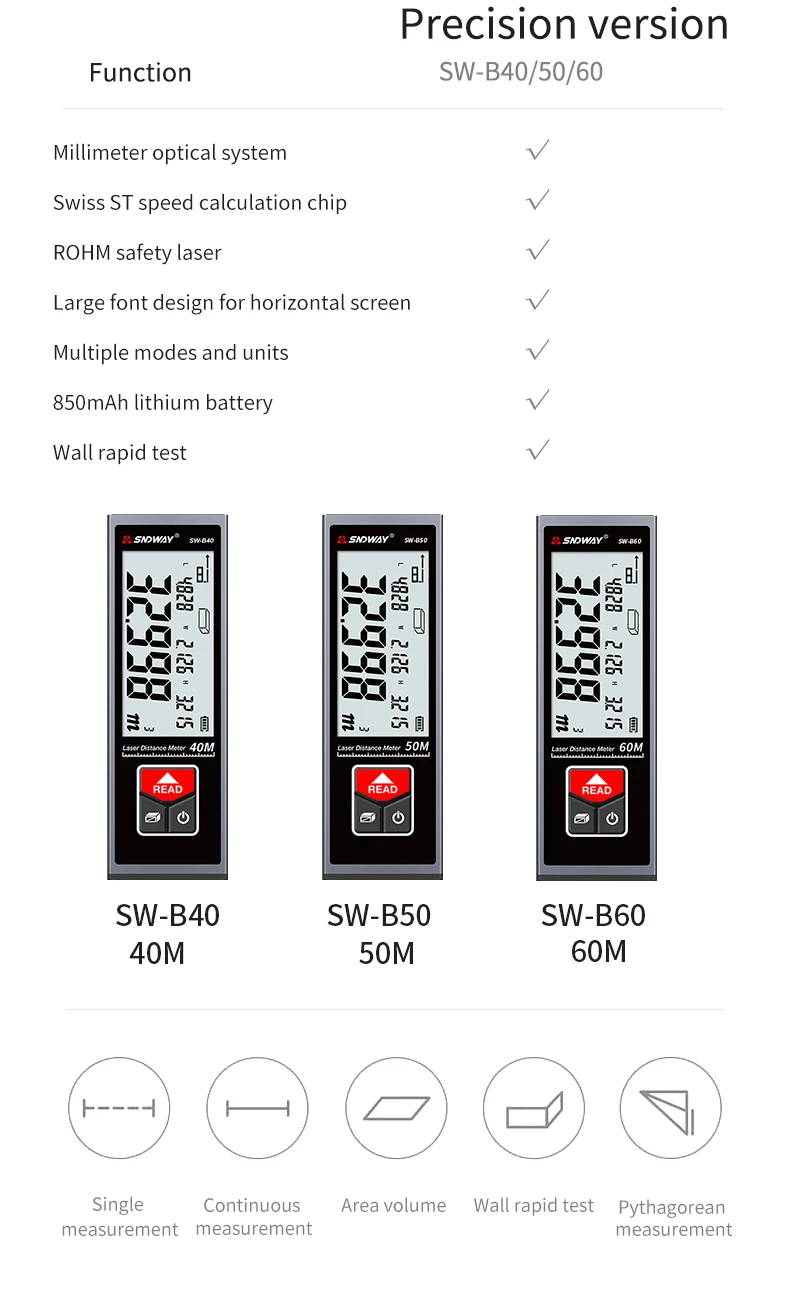 Дальномер может быть широко использован в строительстве и промышленности, особенно в больших областях, таких как комнаты, квартиры, здания, недвижимость, фабрики и т. Д. Он имеет следующие особенности: