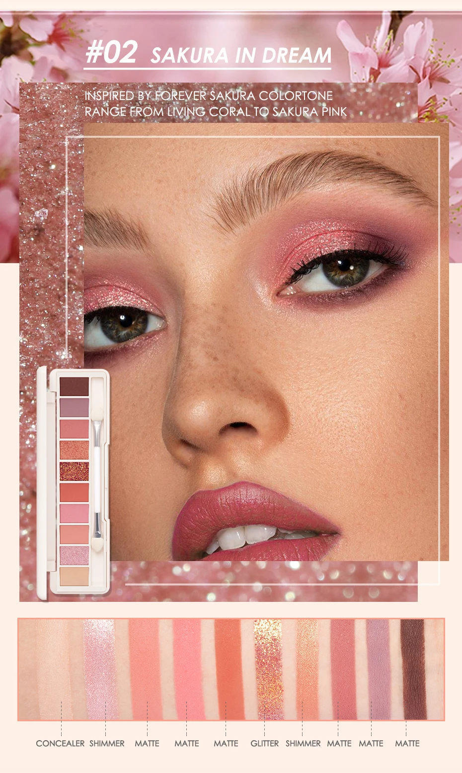 Каждая палитра имеет праймер для век + матовый + мерцающий + блестящий, легко создать любой вид глаз.