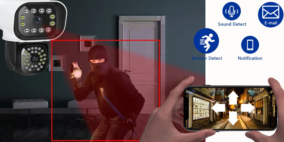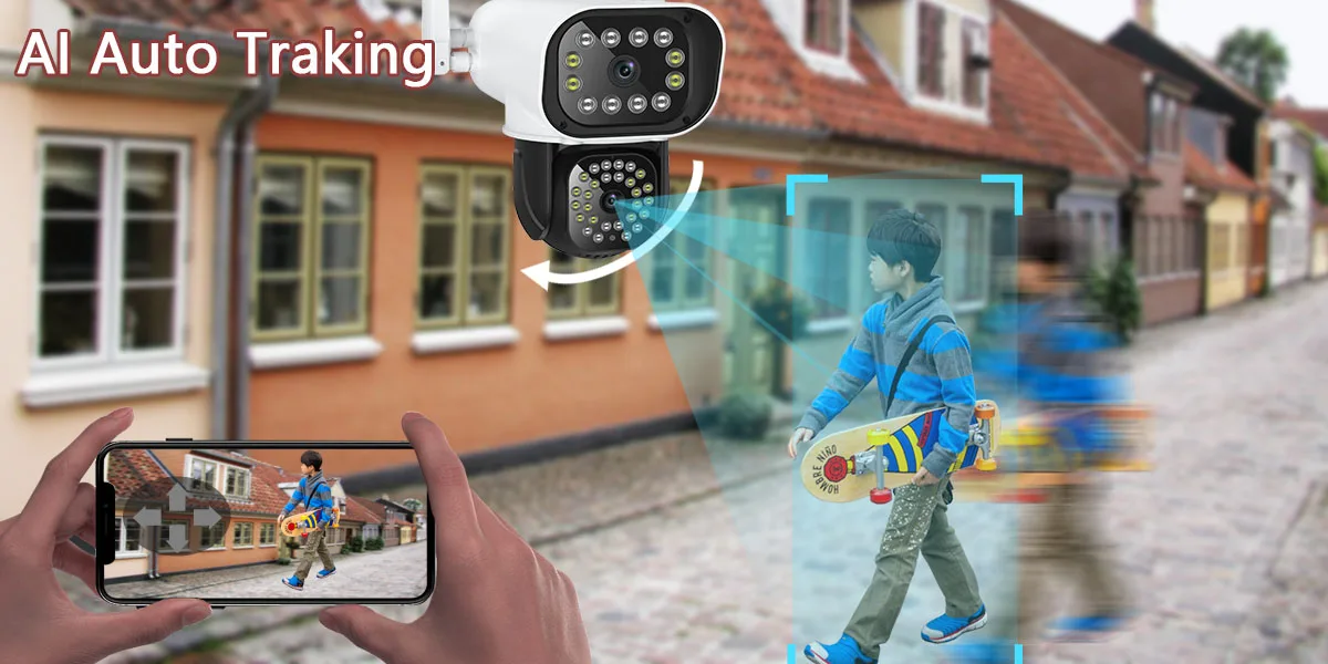 С PTZ 355 ° панорамирование 100 ° наклон, 360 ° угол обзора, cctv камера беспроводная наружная может контролировать каждый угол. Поддержка горизонтального автоматического отслеживания и вертикального горизонтального ручного отслеживания.