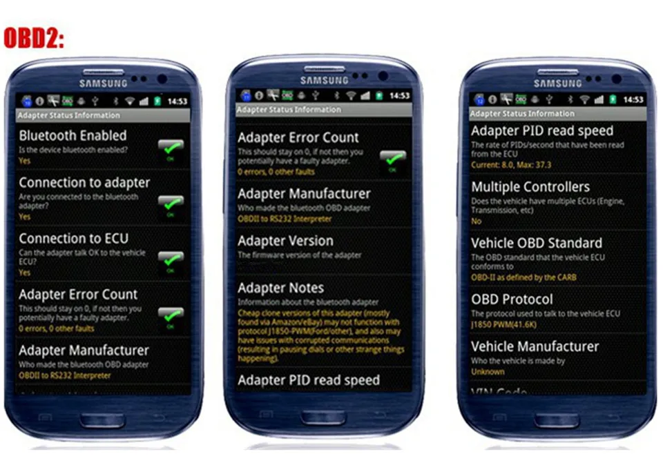 Поддержка всех протоколов OBD2 работает на Android Symbian, используется для чтения диагностических кодов неисправностей, как общих, так и конкретных производителей, и отображает ваше значение. (более 3000 общих кодов в базе данных)