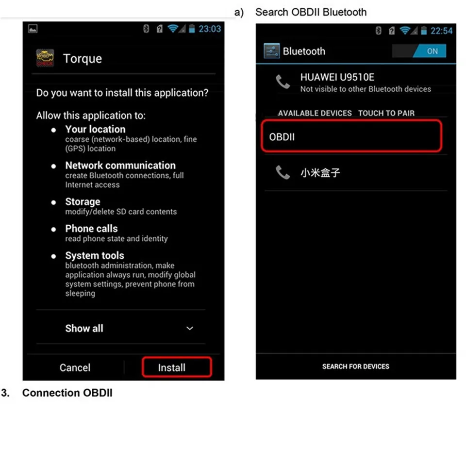 1. Откройте «Настройки» вашего android и найдите bluetooth Совместимость с ELM327:OBDll, затем введите пароль 1234.