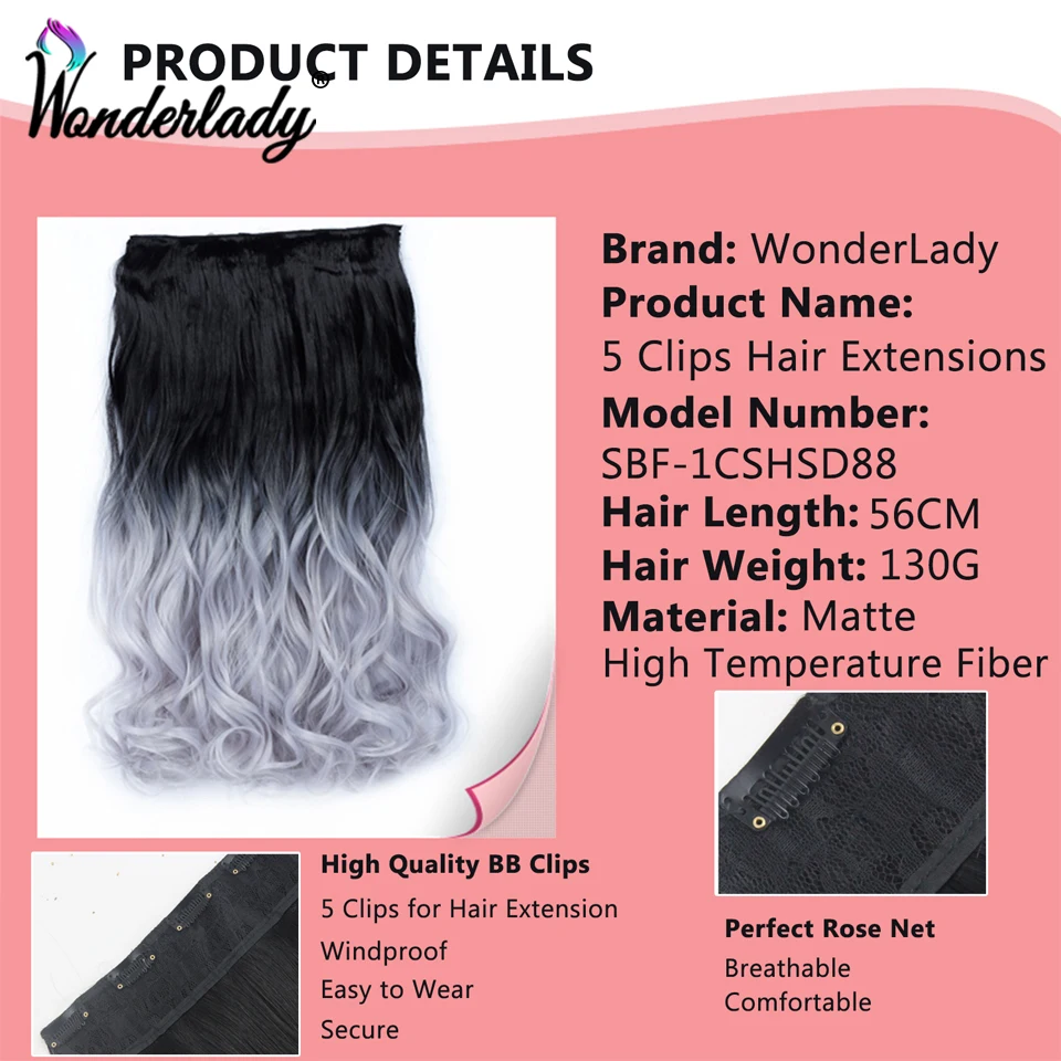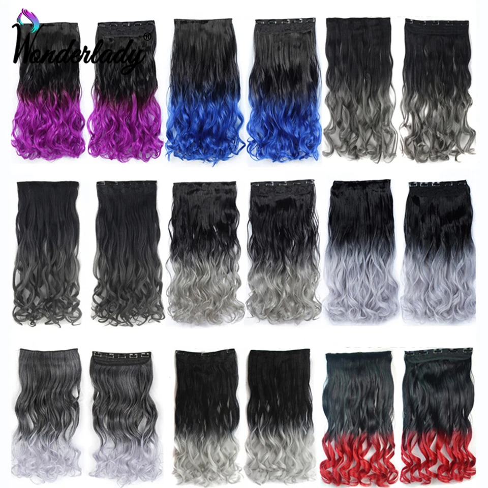 WonderLady наращивание волос на клипсах 22 дюйма 25 цветов Омбре синтетические вьющиеся волосы 5 клипсов для наращивания волос одна штука шиньоны