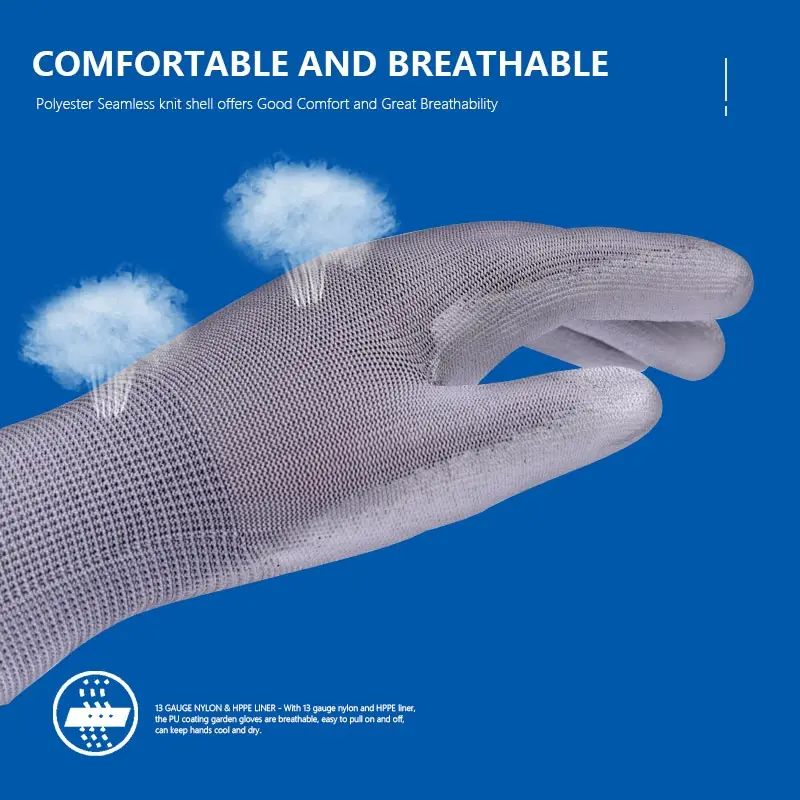 Andanda рабочие перчатки, отличное сухое сцепление эко Серый 13 калибр полиэстер ПУ перчатки для работы дома, садоводства, техники и оборудования