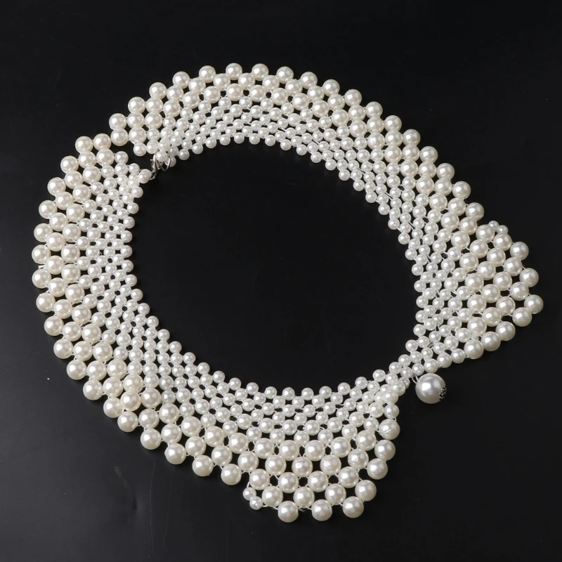 Тканая шаль ручной работы с бисером, многослойная имитация жемчуга, ювелирный дизайн, с большим кулоном из искусственного жемчуга в центре.