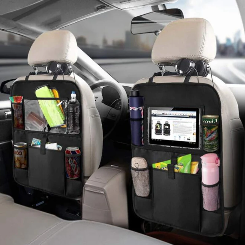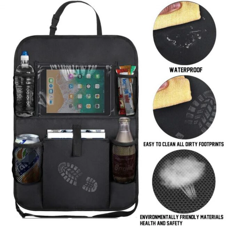 Простота установки: протектор спинки прост в установке на любом транспортном средстве. Двойной замок безопасности (с ремнями выше и посередине) надежно сидит, а низ не свисает свободно, как и многие другие задние карманы.