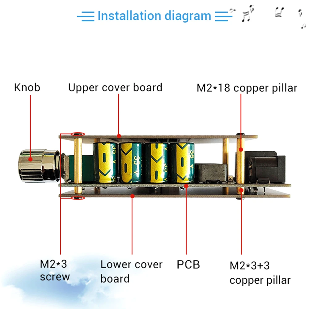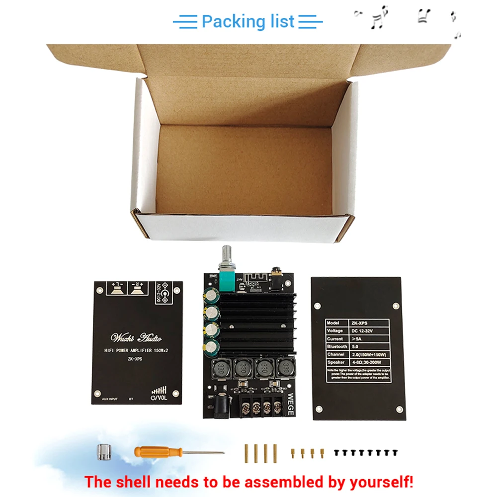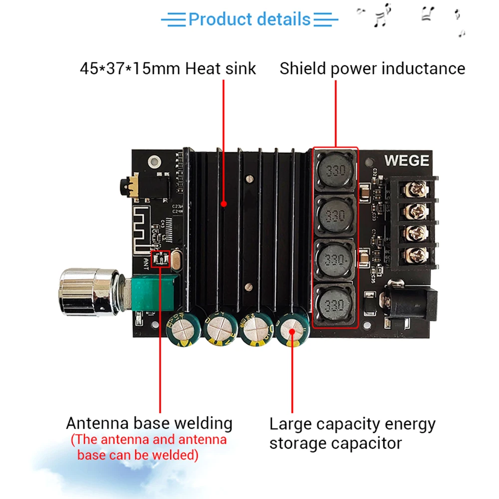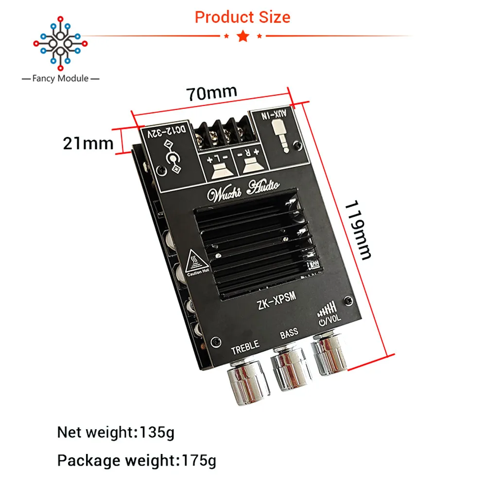 Чем выше напряжение источника питания, тем выше выходная мощность и чем меньше сопротивление динамика, тем больше выходная мощность! Убедитесь, что мощность адаптера больше фактической рабочей мощности усилителя!