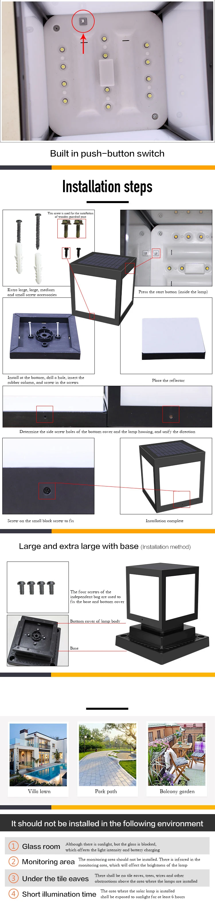 1. Перед установкой и зарядкой Включите кнопку swicth. (это очень важно, чтобы ее можно было зарядить под солнечный светильник)