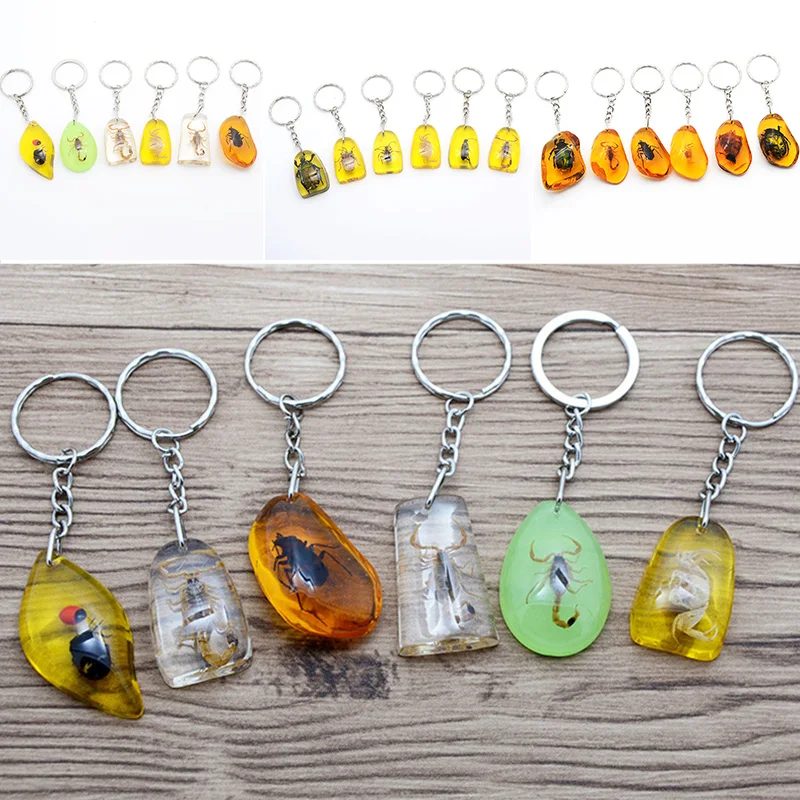 Имитирующий Янтарный Брелок с плоским дном, капля воды, настоящее насекомое, образец, сделай сам, Автомобильный ключ, кулон, цвет, прозрачный, светящийся, смешанный, оптовая продажа