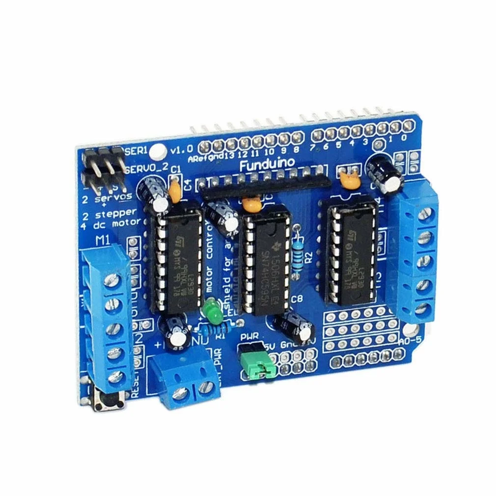 L293d является комплексным, высокое напряжение, перегрузок по току и 4-канальный монолитно-драйвер. В основном это означает использование этого чипа, вы можете использовать двигатели постоянного тока и источники питания до 36 вольт, это означает, что некоторые очень большие двигатели и чип могут обеспечить максимальный ток 600мА на канал, Чип l293d также известен как тип h-bridge.H-bridge обычно является электрической схемой, которая позволяет применять напряжение в любом направлении к выходу, например, двигателю. -2 сервопривода 5 в интерфейс подключен к выделенному таймеру высокого разрешения без тремора! -Вы можете управлять четыре шага или 2-servo двигатели До четырех двунаправленный двигатели с 8-битный индивидуальный выбор скорости До двух однослойных (однополярных или биполярных) ступенчатых двигателей, двойная катушка или переплетенный пол. -4 моста h: мост обеспечивает 0,6a (1,2a пиковое значение тока) с тепловой защитой, может работать двигатели в 4,5 до 36В постоянного тока -Выдвижные резисторы Отключение двигателей во время выключения Кнопка сброса. -2 внешних клеммных интерфейса, для отдельных источников логики/двигателя Тест совместим с mega, diecimila и duemilanine. Посылка включает в себя: Щит двигателя l293d * 1