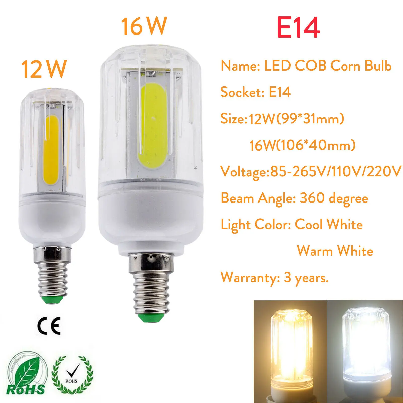 COB светодиодный светильник для кукурузы Спецификация: