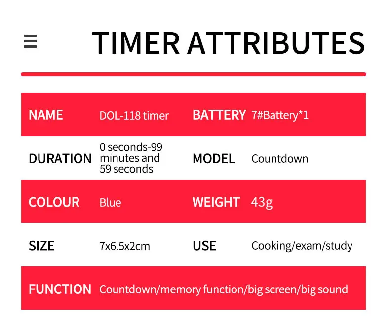 Функция s: время, обратный отсчет, функция памяти, вкл/выкл, звуковое напоминание
