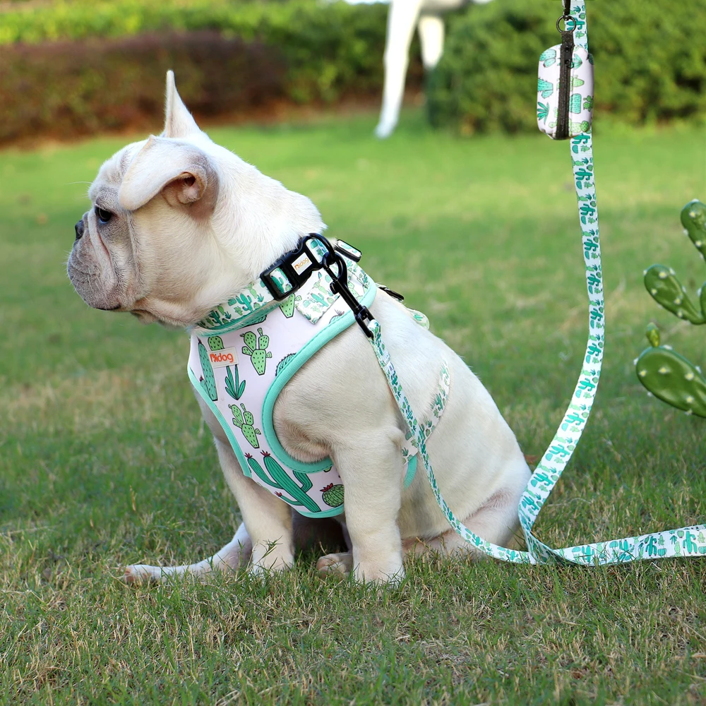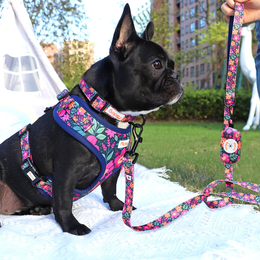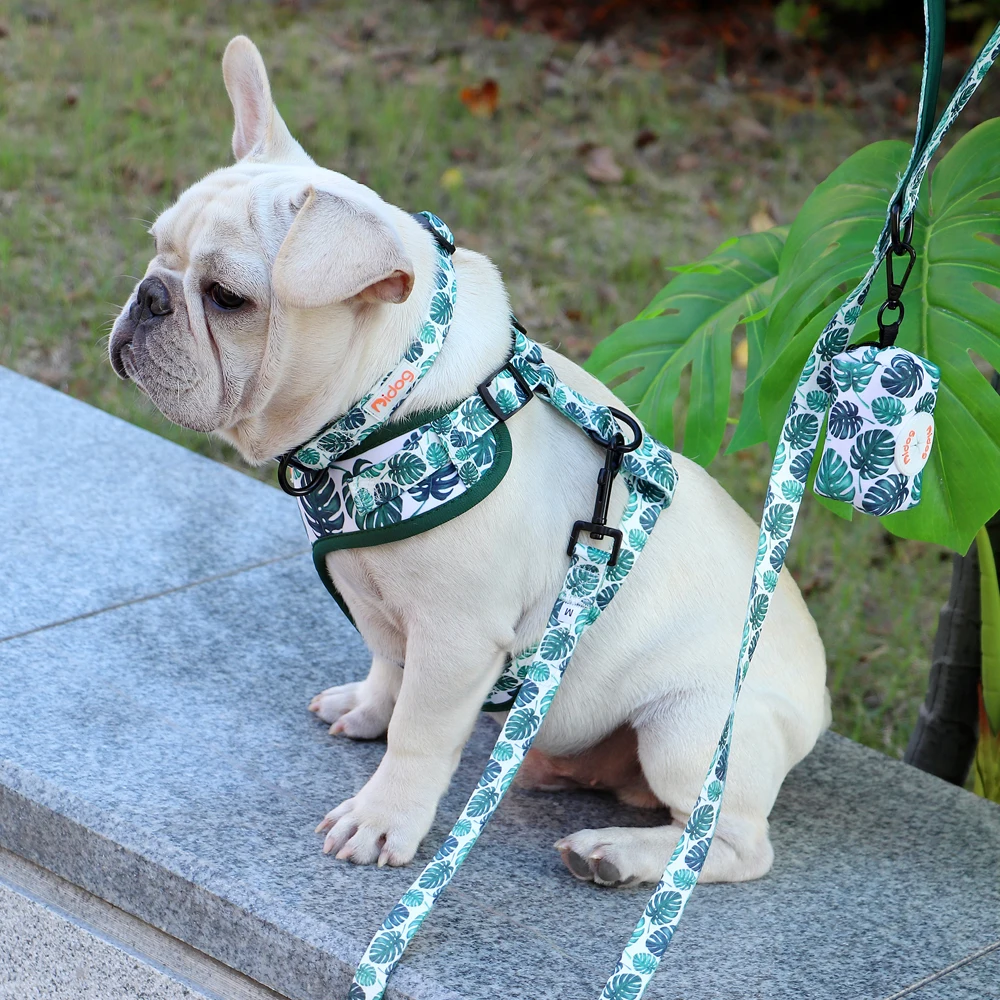 Поводок с принтом собачий ошейник, поводок, сумка, набор, регулируемые ошейники для домашних животных, жилеты для маленьких средних собак, домашних животных, прогулочная веревка, мешки для мусора