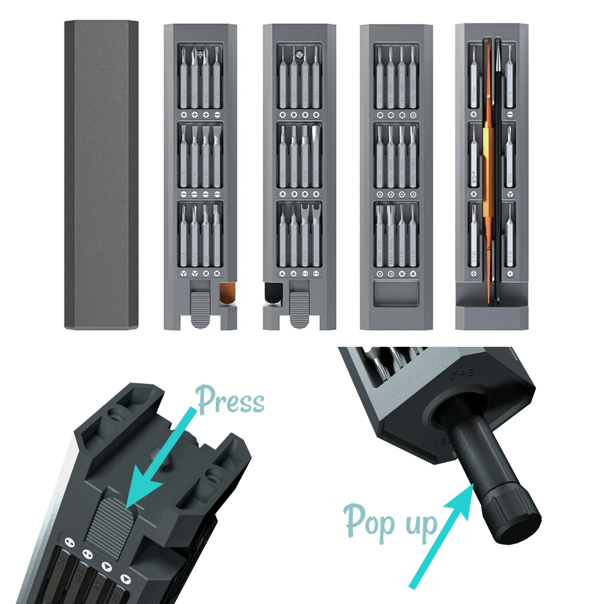 5. Нажмите на журнал для легкого доступа к отвертке, паз встроен в магнитную адсорбцию, и бит не отпадает.