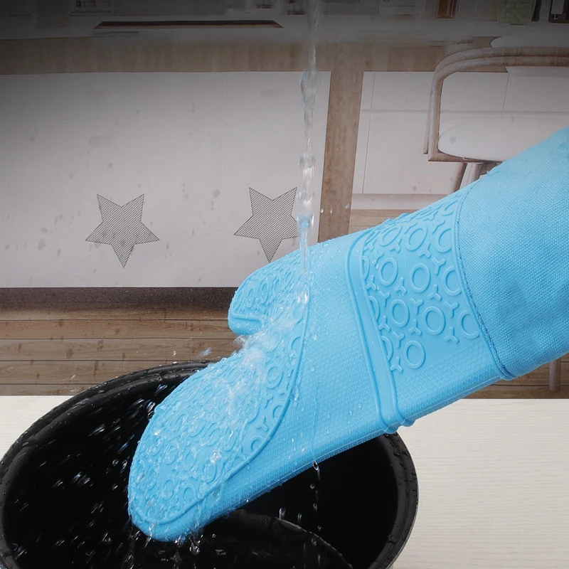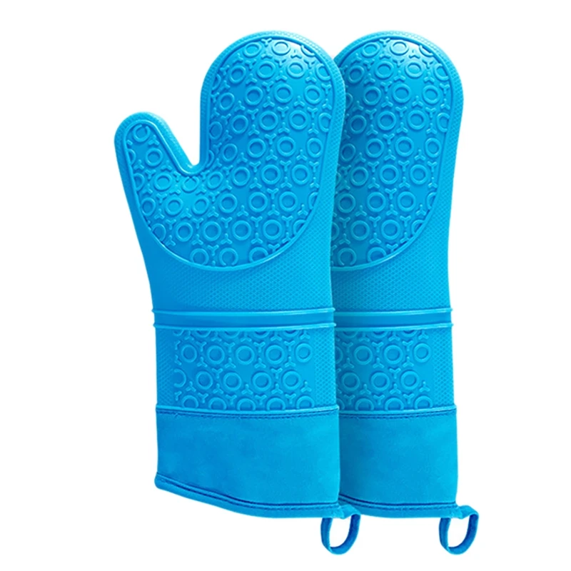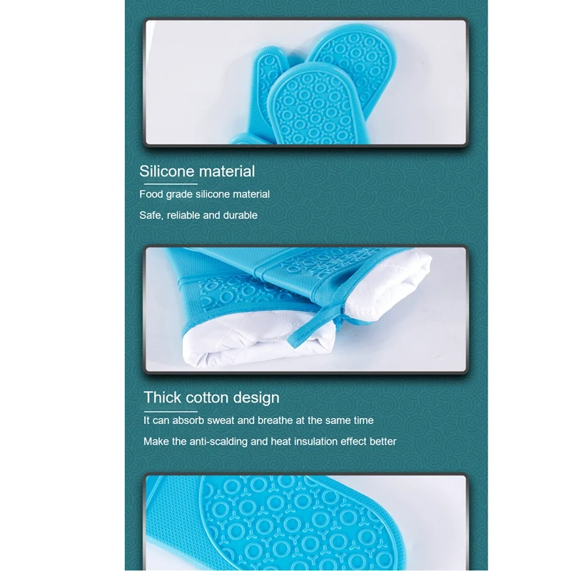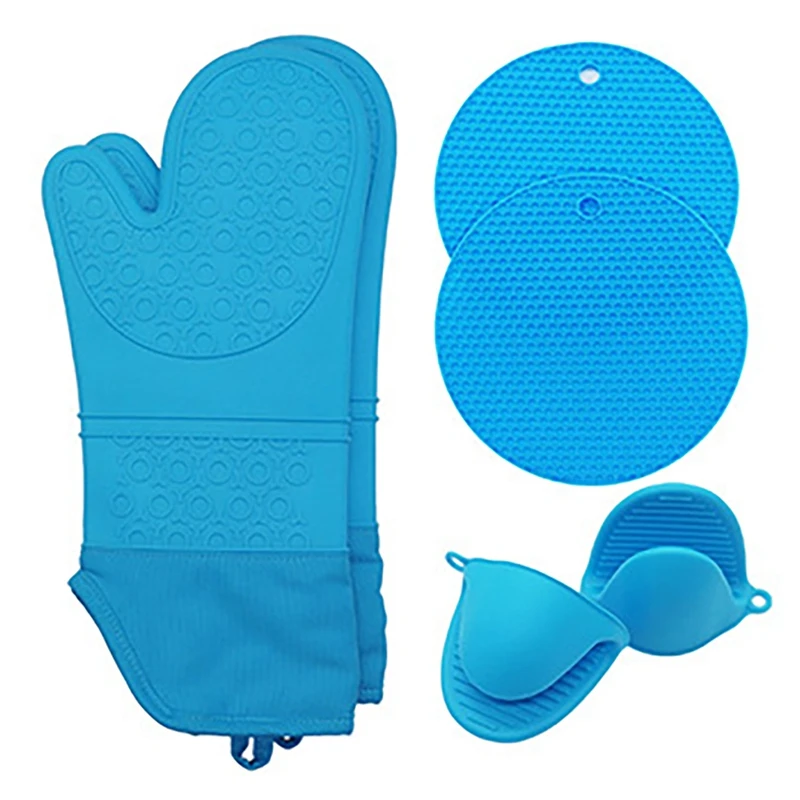 8 Pcs Plus Cotton Thick Silicone Gloves Hand Clip Kitchen Insulation Oven Baking Silicone Long Oven Gloves Blue
