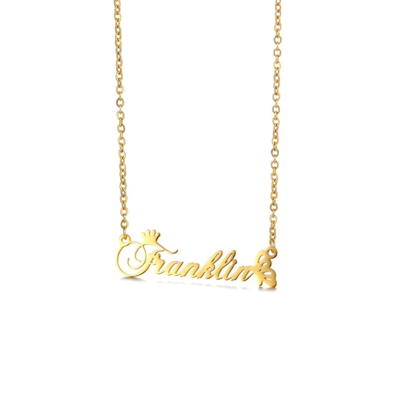 Название: ожерелья с именами короны для женщин из нержавеющей стали по индивидуальному заказу; Модное ожерелье с надписью «бабочка»; Ювелирные изделия