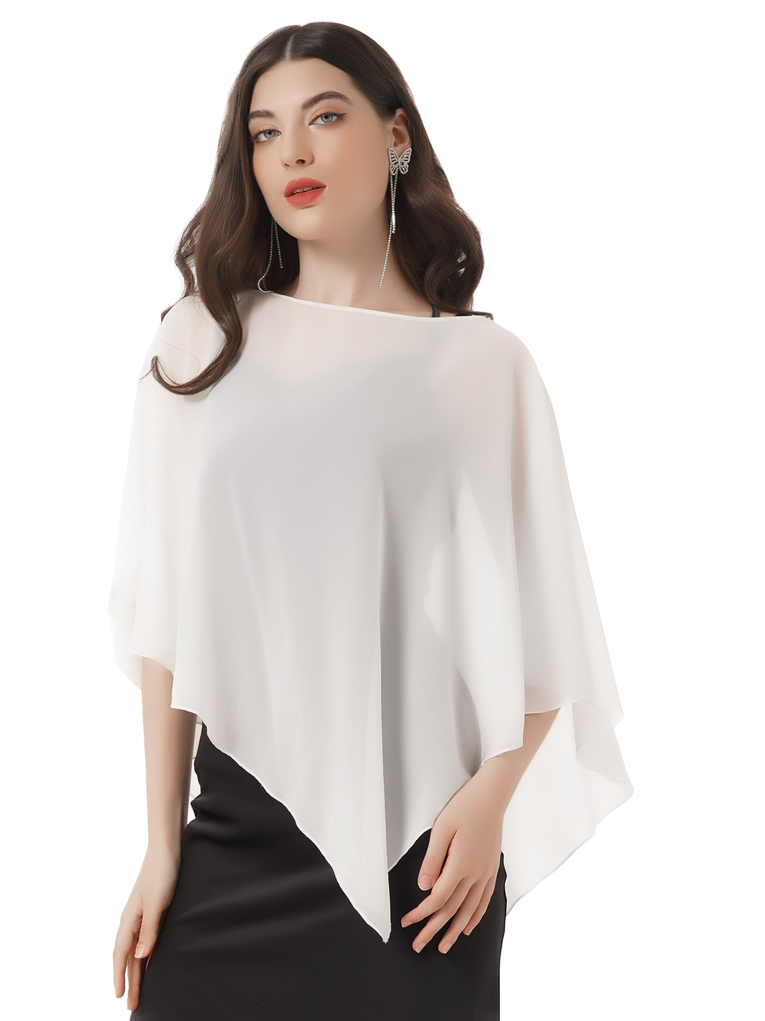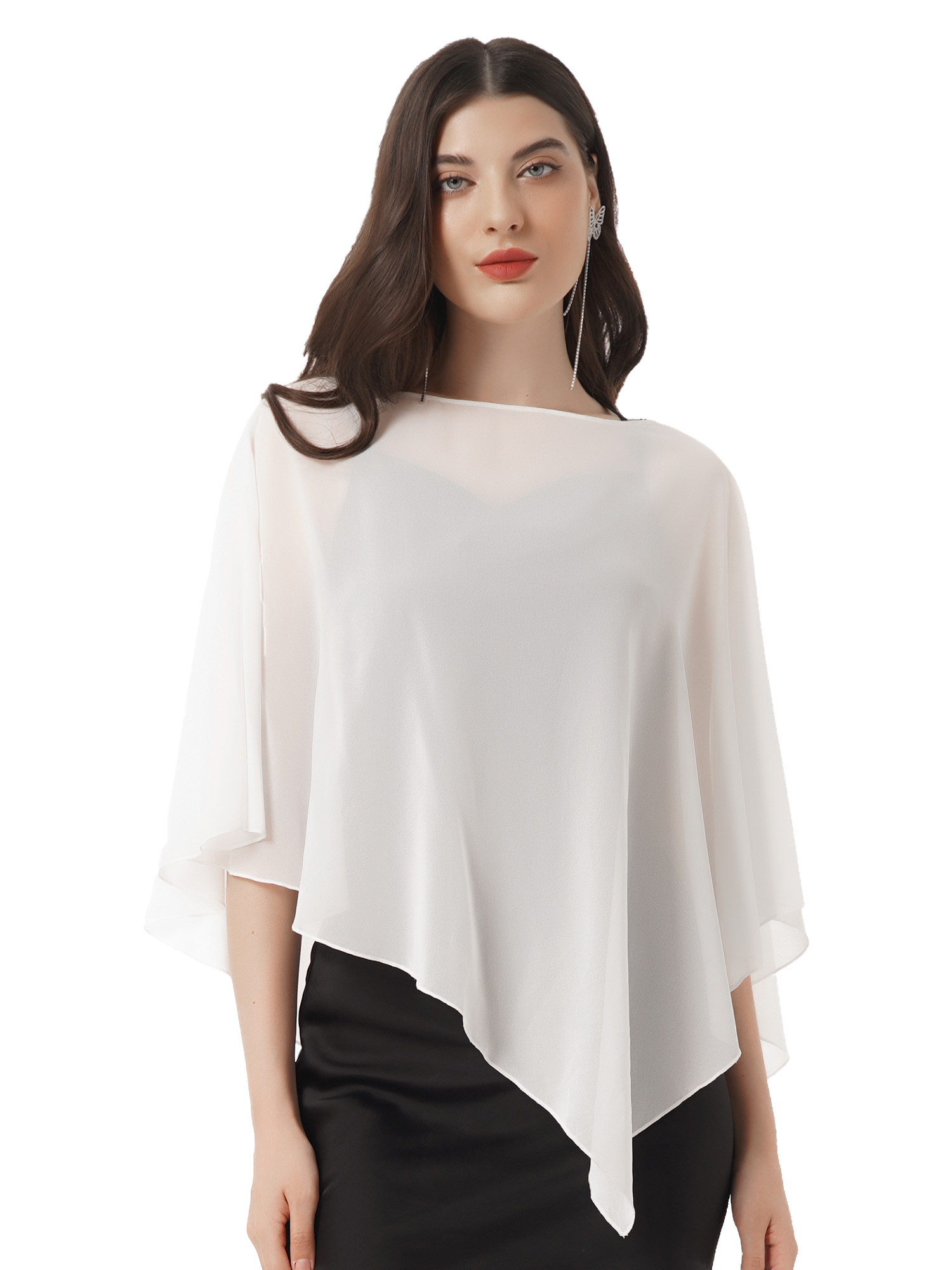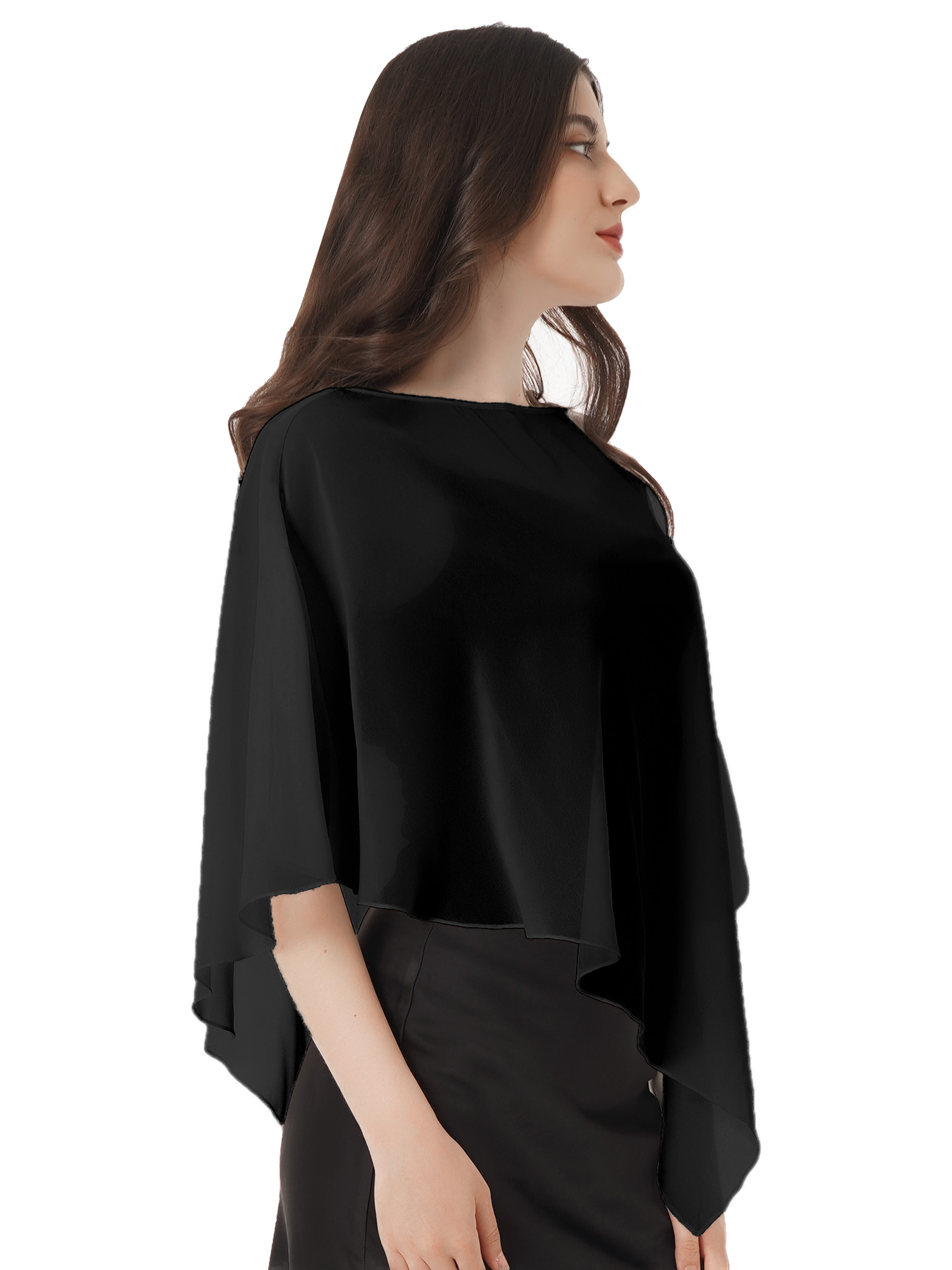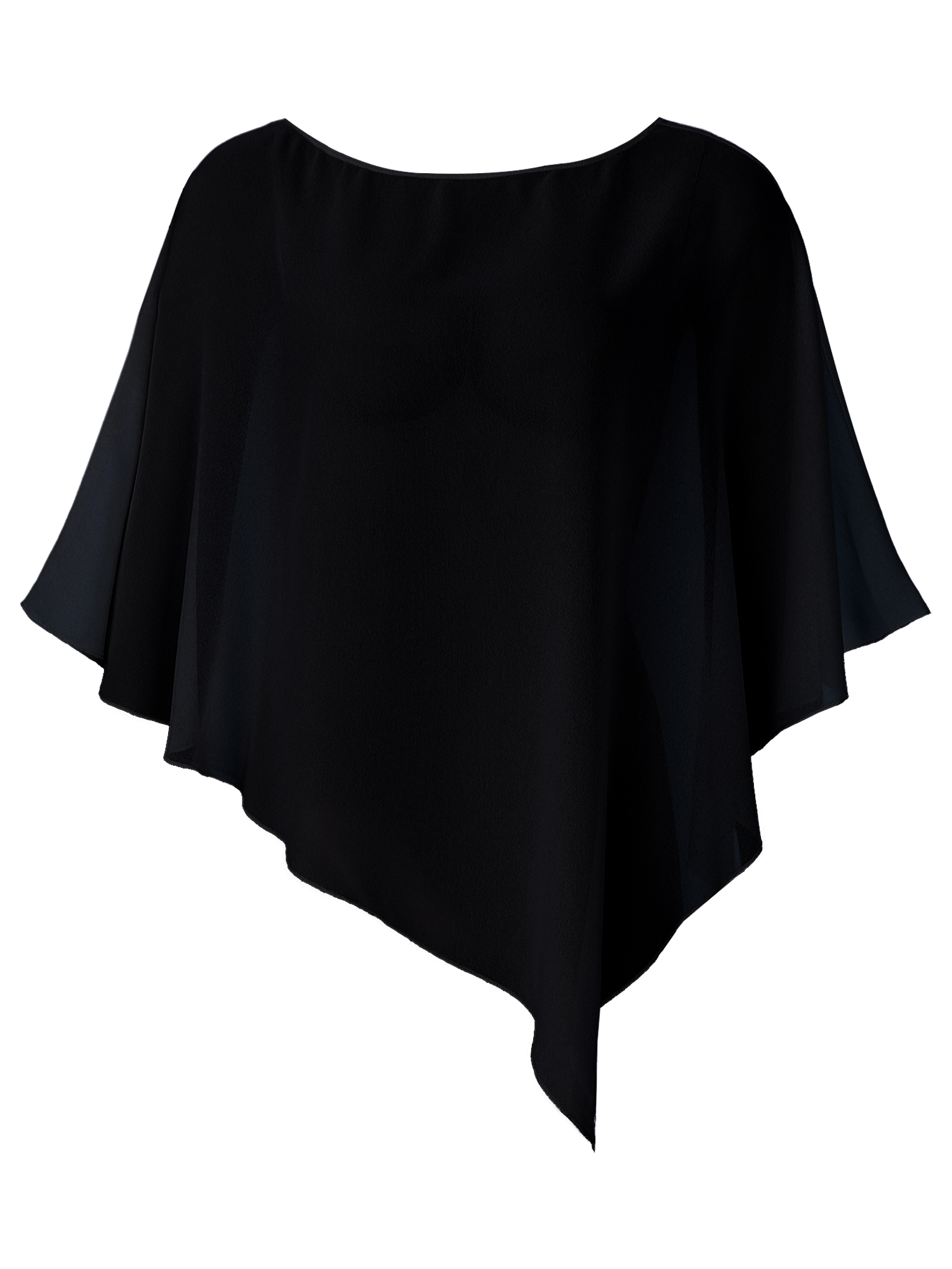 Этот ассиметричный плащ очень хорошо скрывает плечи, живот и живот.