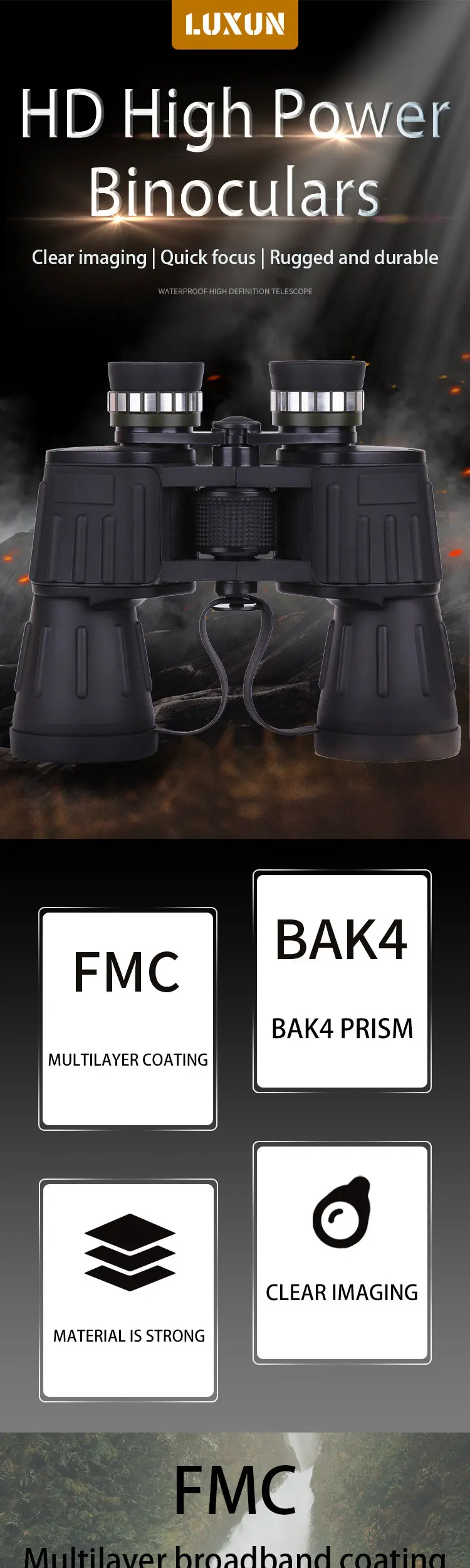 LUXUN Мощность Фул Профессиональный бинокль 60x50 оптика высокое Мощность HD бинокль для охоты и туризма Военный бинокль телескоп