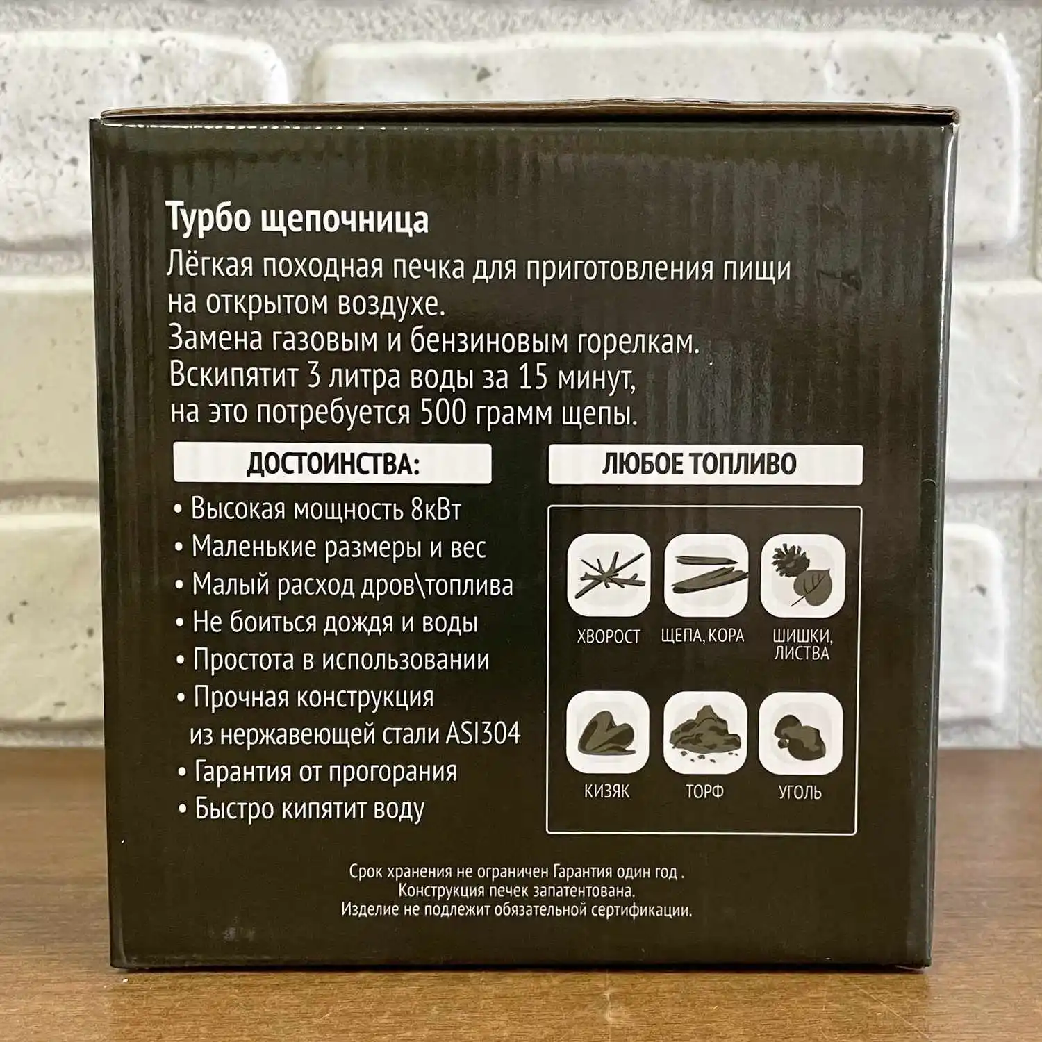 Прекрасная альтернатива газовым и керосиновым горелкам, так как не требует носить с собой топливо. Благодаря электрическому нагнетателю, работающему от 2-х батареек АА, печка развивает высокую мощность, что позволяет кипятить воду за считанные минуты. Стабильно работает при отрицательных температурах, а также при использовании даже сырых дров.