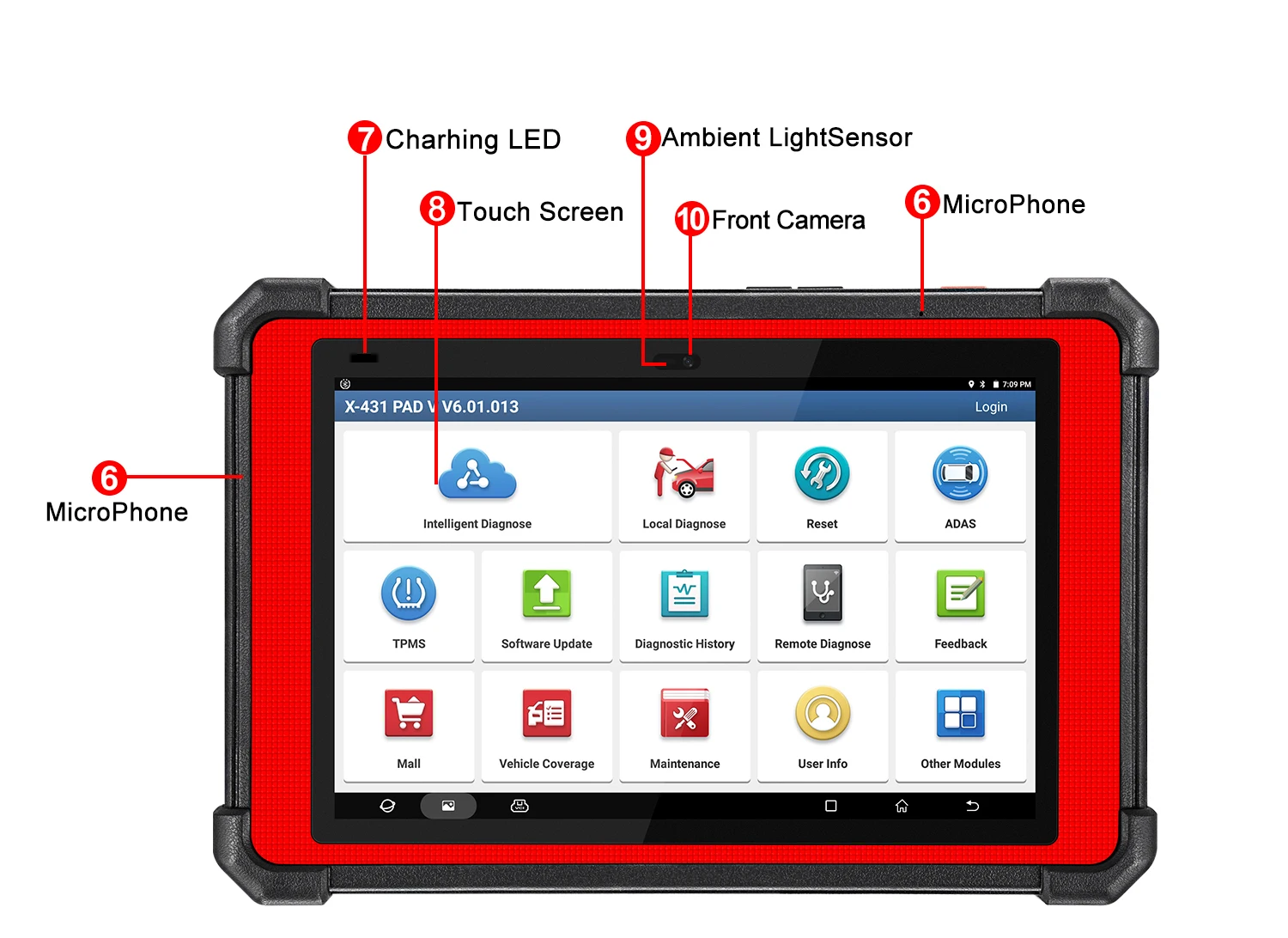 Запуск X431 PAD V оснащен 10 дюймов экран, 6 ГБ ОЗУ + 64 Гб памяти жесткого диска (до 128 ГБ), система android планшет, 15000 мА/ч, батарея, 8-ядерный процессор. Оснащен док-станцией, которую можно заряжать в любое время. X431 PAD V оснащен смарт-боксом, обеспечивая более быструю двойную Wi-Fi машину и 5G сетевую связь.