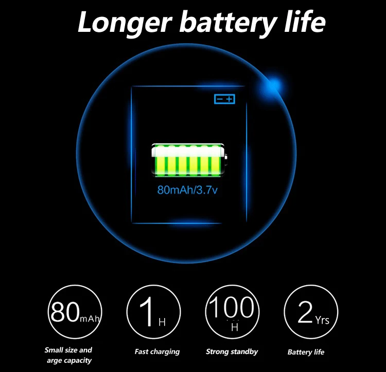 Встроенный аккумулятор емкостью 80 мА · ч, Спортивные Беспроводные наушники с микрофоном имеют большой срок службы батареи с 100 часов в режиме ожидания и 5 часов воспроизведения. Быстрая зарядка в течение 1 часа обеспечивает достаточно времени воспроизведения для прослушивания музыки или телефонных звонков. Спортивные наушники bluetooth позволяют наслаждаться прекрасной музыкой во время путешествий и занятий спортом.