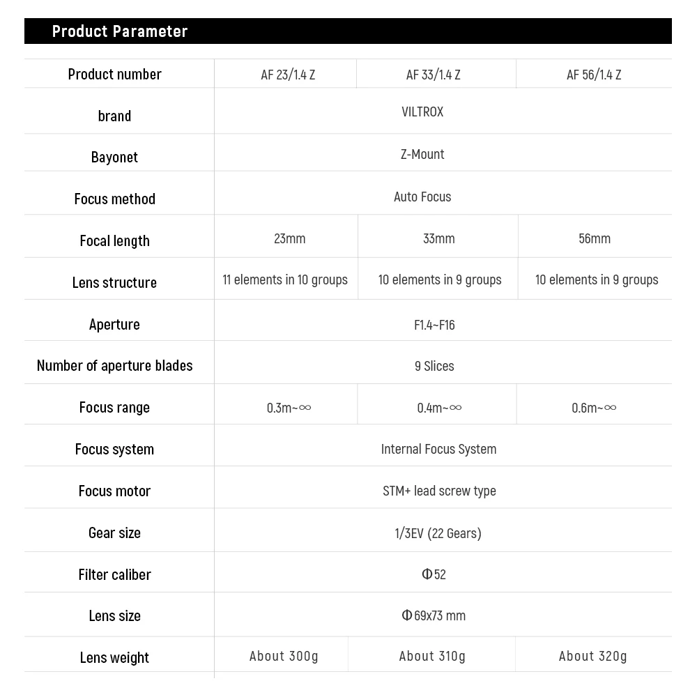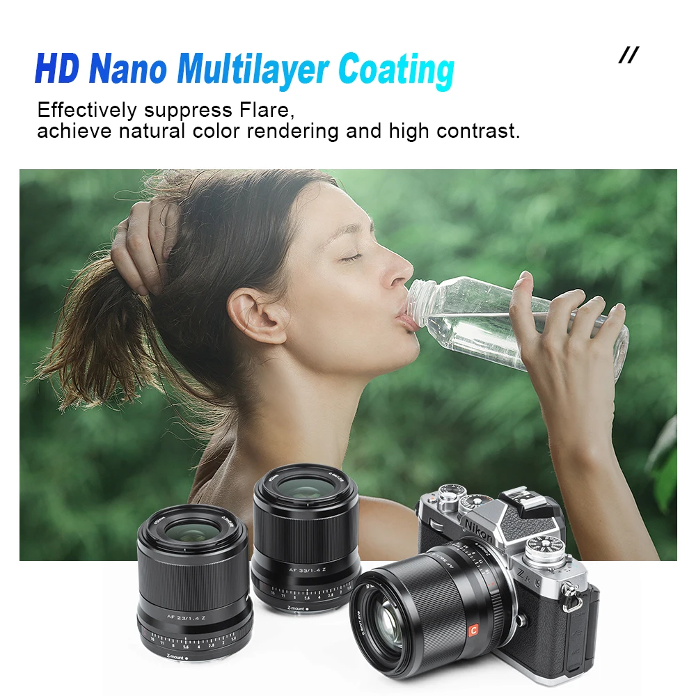 Линейка Viltrox 23 мм 33 мм 56 мм наконец-то установила z-крепление, которое предназначено для моделей камер формата датчика Nikon APS-C, таких как Z50 и последняя модель Nikon Zfc, но все еще Подходит Для полнокадровой серии однако. Эта линейка линз оснащена Eye-AF, линейной апертурой, двигателем STM, а также обновлением прошивки USB-C. Они, безусловно, являются удивительным выбором для портретов, пейзажей, архитектурных или уличных фотографий и т. д.!