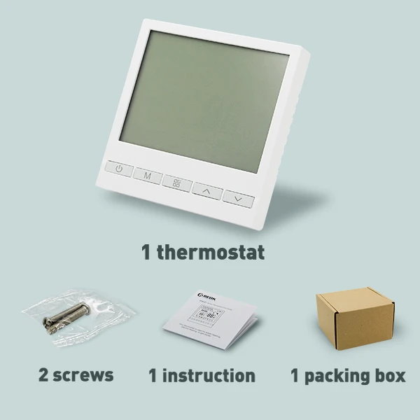 Что входит в посылку?1 Термостат котла; 1 руководство на английском языке; 2 винта