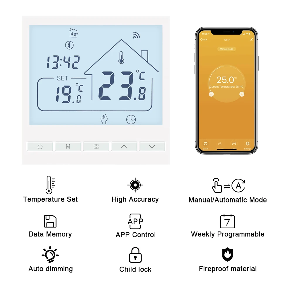 Интеллектуальный цифровой регулятор температуры TOL47-это система напольного отопления, подходящая для газового котла и домашнего контроля температуры.