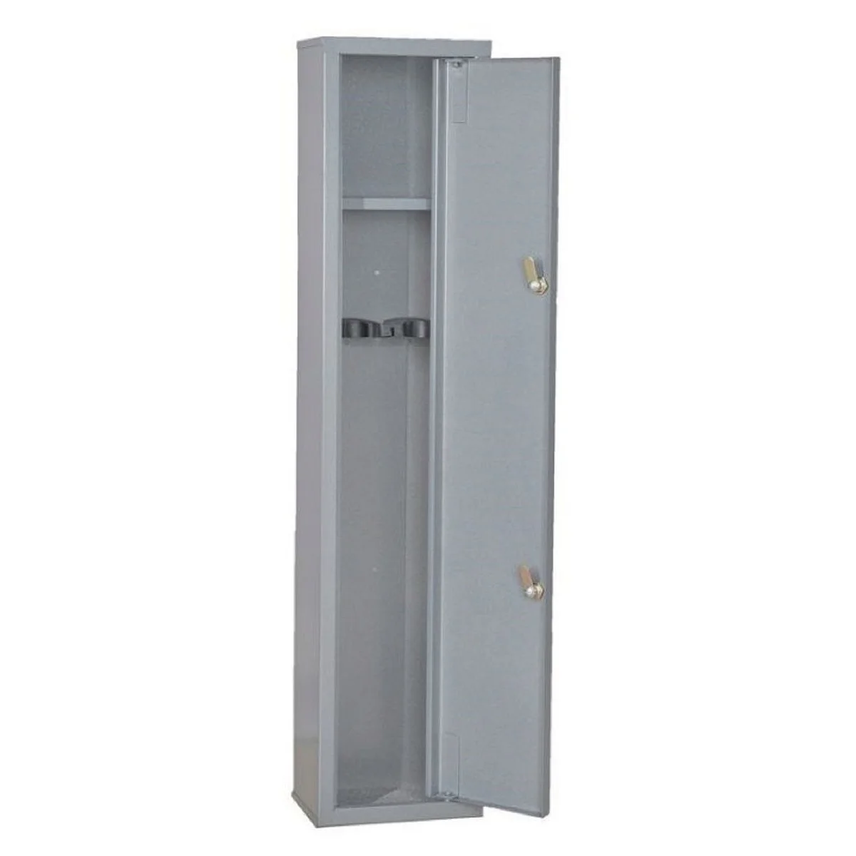 Компактный оружейный шкаф ОШН-2 односекционный предназначен для хранения гладкоствольного и нарезного охотничьего оружия, а также боеприпасов и принадлежностей. Представляет собой усиленный металлический ящик для защиты от несанкционированного доступа. Соответствует всем необходимым требованиям МВД России к хранению огнестрельного оружия.