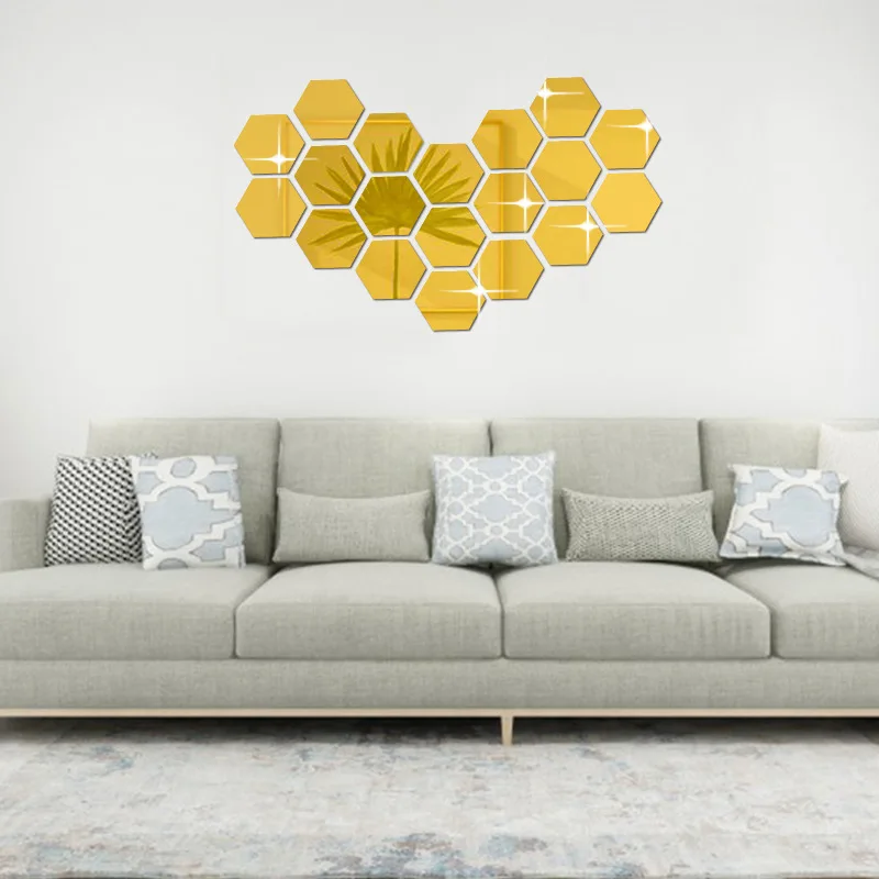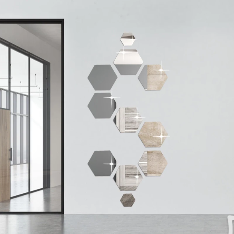 Шестигранные трехмерные Акриловые Настенные зеркальные наклейки самоклеющиеся для комнаты, гостиной, лестницы, Декорации для стен DIY