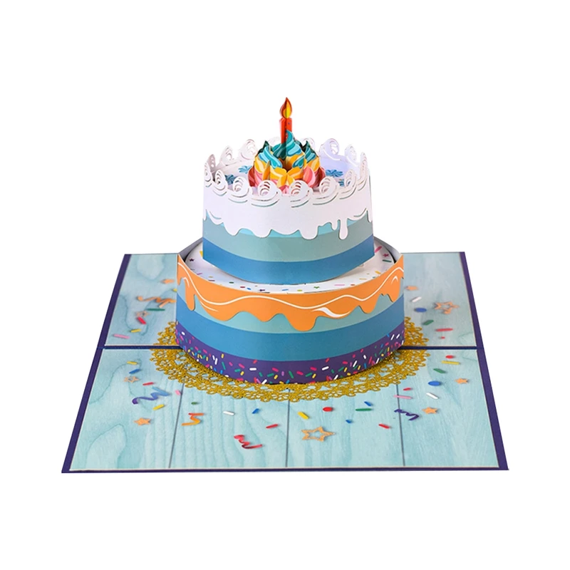 Открытка на день рождения с сюрпризом: эффект сюрприза 3d-карт на день рождения намного лучше, чем у традиционной старомодной открытки на день рождения. Когда карта открывается, она автоматически появляется как красивый синий трехмерный двойной торт, что приносит вам большой сюрприз для главного героя вечерние.