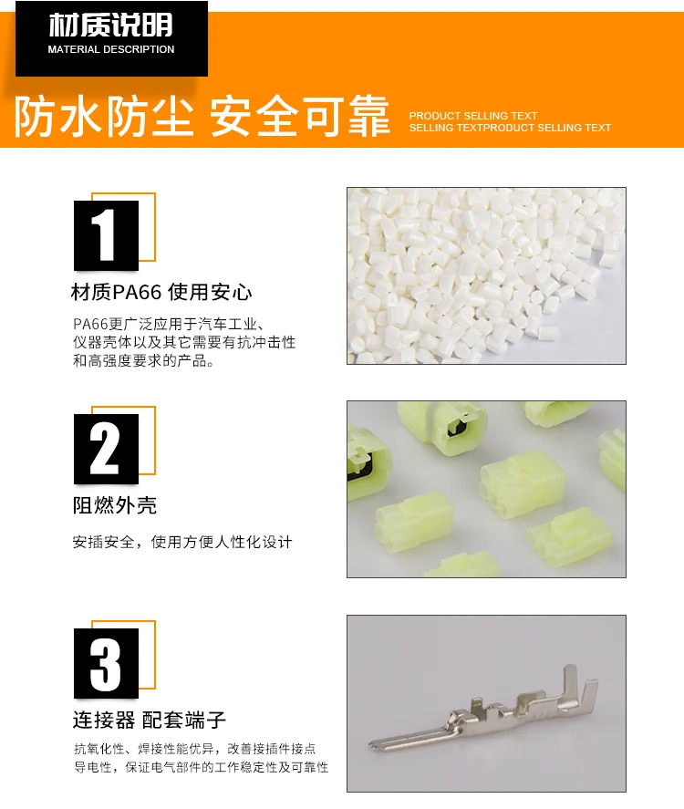 Материал: нейлон или разъем PA66. Терминал из меди или нержавеющей стали