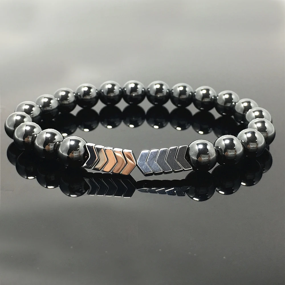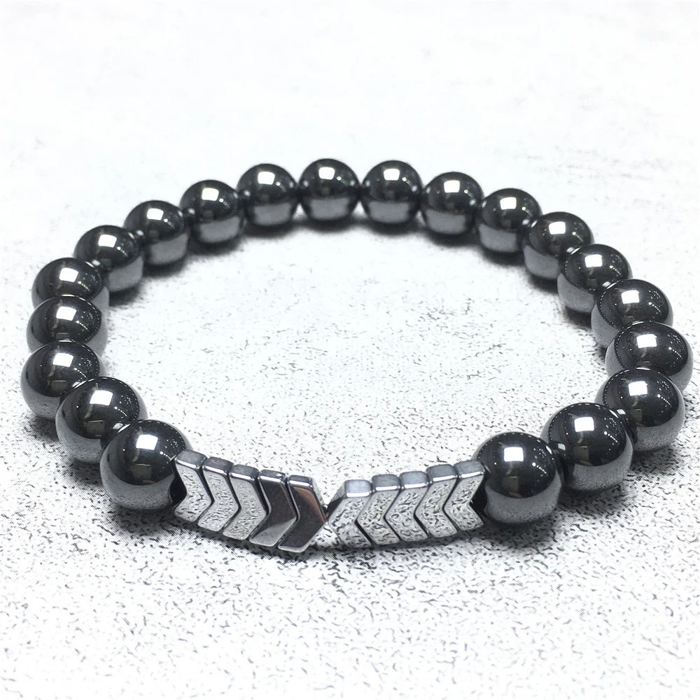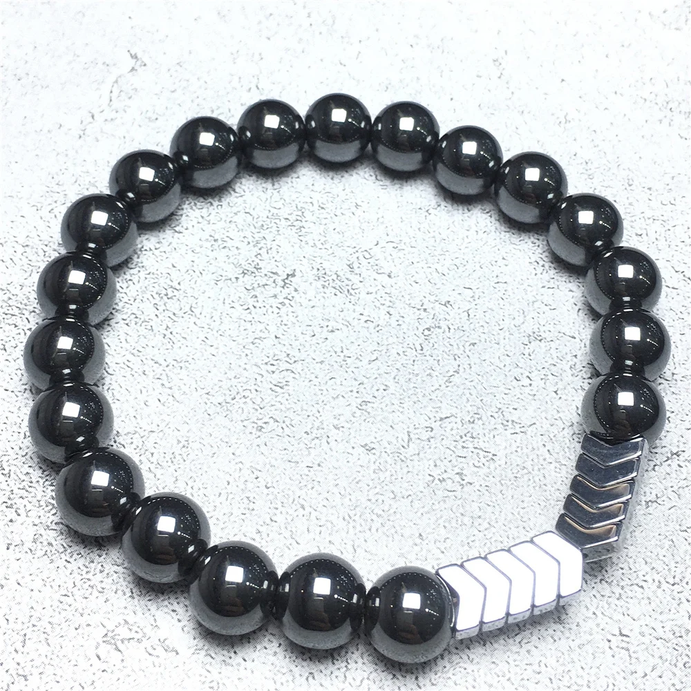 8 мм черный гематит браслеты натуральный камень из бисера целебная энергия браслет для женщин, регулируемый эластичный браслет для мужчин