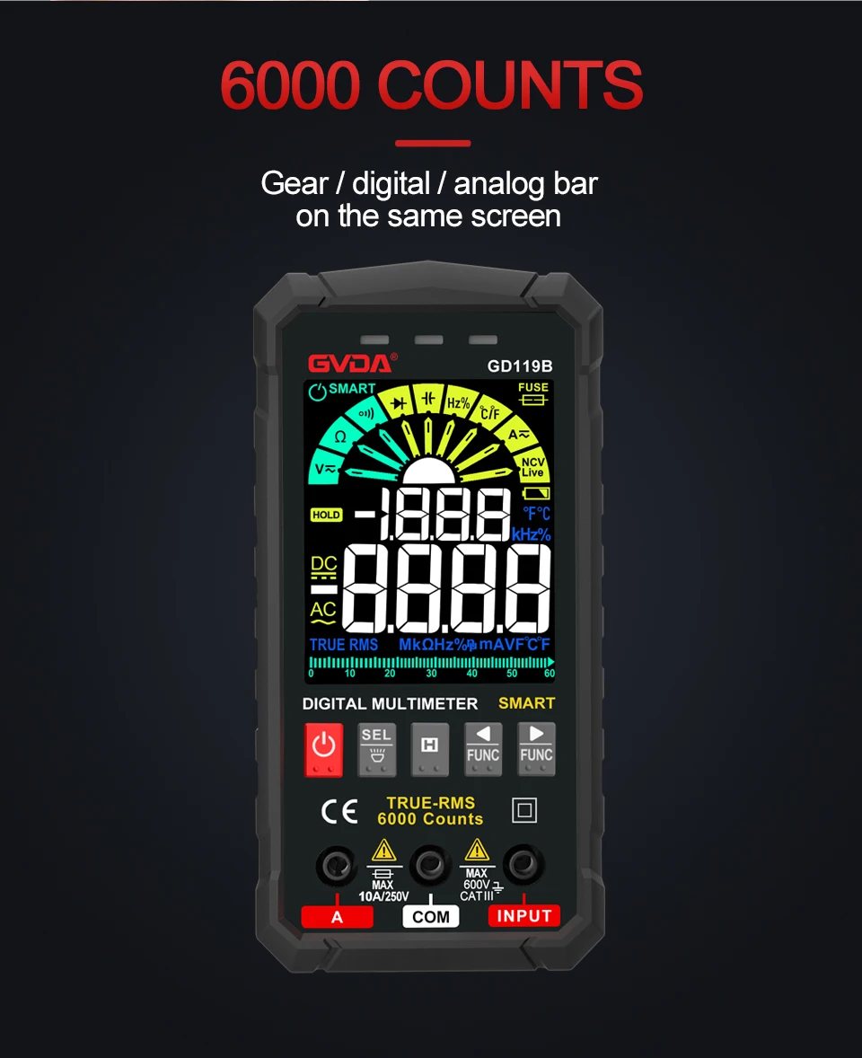 Умная функция (напряжение переменного/постоянного тока, сопротивление и непрерывность): Да