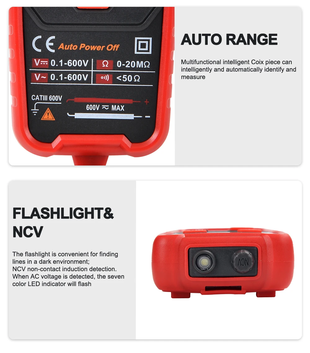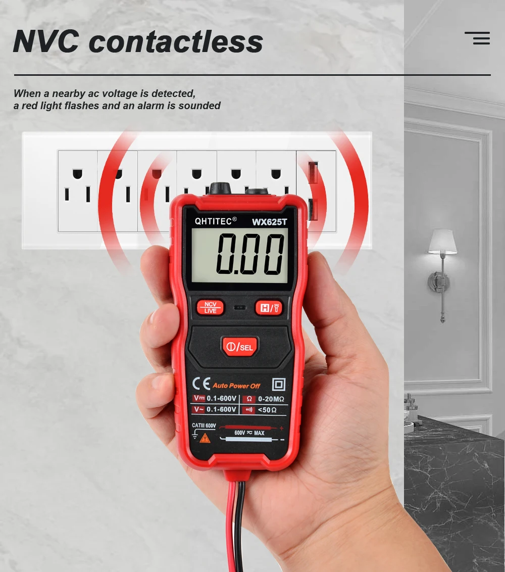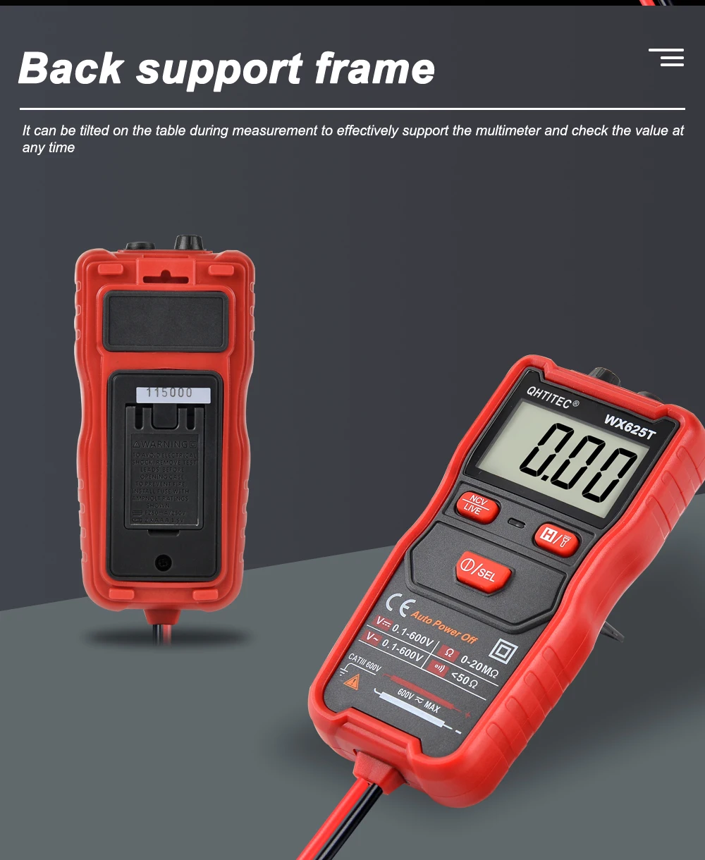 QHTITEC WX625T цифровой мини мультиметр тестер авто Mmultimetro True Rms Tranistor метр с NCV Удержание данных 1999 отсчетов фонарик