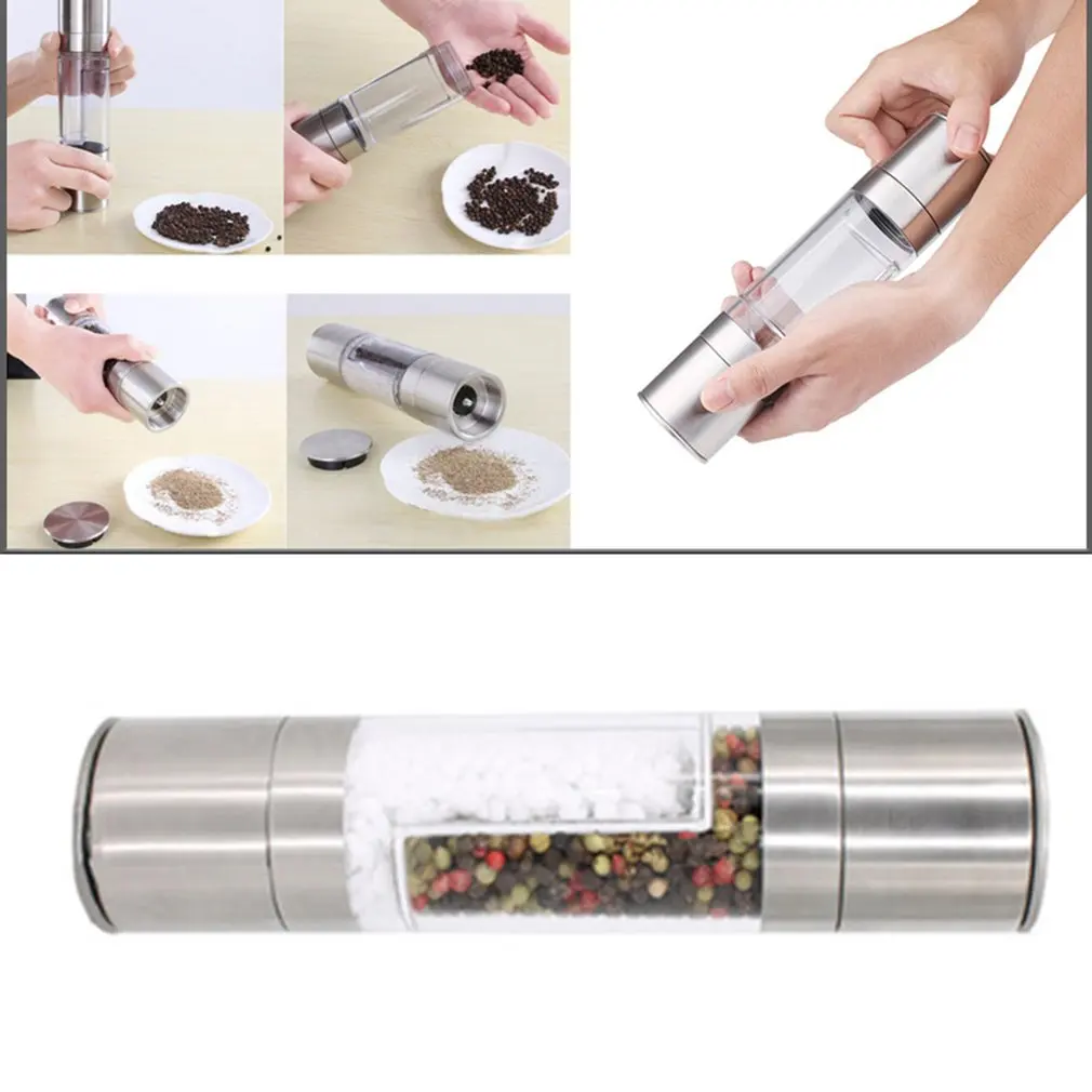 2 в 1 двойная камера из нержавеющей стали для кражи морской соли, перца, шлифовальный станок, регулируемая грубость, мельница для специй, приправа, измельчение, кухонные инструменты