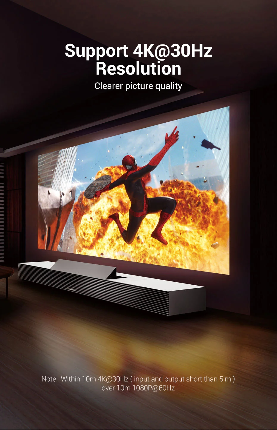 【 Ultra HD 4K визуальная поддержка 】 полная пропускная способность 10,2 Gpbs, поддержка разрешения до 4K @ 30Hz chroma выборки, что делает изображение дисплея более изысканным и реалистичным, действительно подарит праздник для ваших глаз. Конечно, он также поддерживает 3D и 1080P или более низкое разрешение.