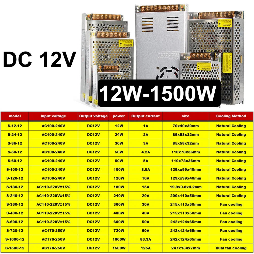 220V постоянного тока до DC12V 1A 3A 5A 10A 20A 10 Вт-1500 Вт импульсный Питание сухой трансформатор AC/DC 12V адаптер питания подходит для Светодиодный свет