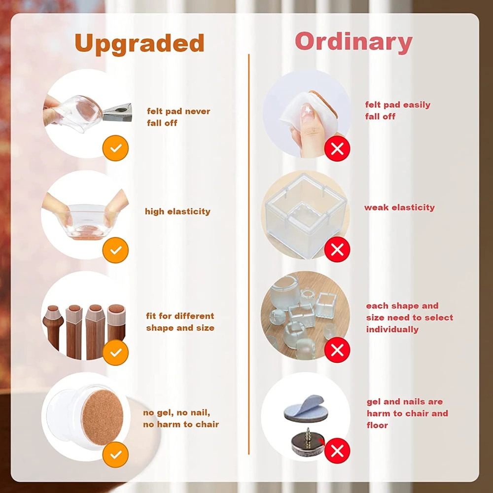 ✅Защитите пол и Уменьшите шум: при перемещении мебели эти колпачки для ног стула защищают пол от царапин и устраняют шум, вызванный перемещением мебели, обеспечение тихой среды для пожилых людей и детей дома.