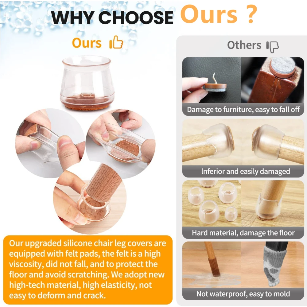 ✅Подходит для мебельных ножек любой формы: мягкий силиконовый материал подходит для мебельных ножек различной формы s и идеально подходит. Например, стулья для ресторанов/барные стулья/стулья для террасы/кухонные стулья/металлические стулья для бистро и т. д.